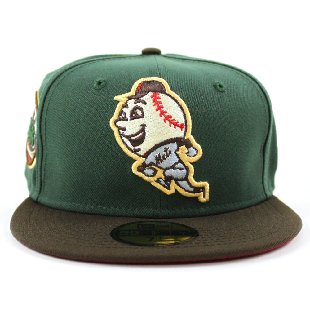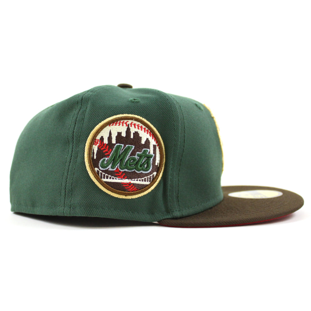 New York Mets Skyline inside Ball New Era 59Fifty Fitted Hat (MOUNTAIN PINE GREEN WALNUT PINOT RED Under Brim)