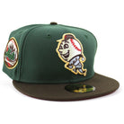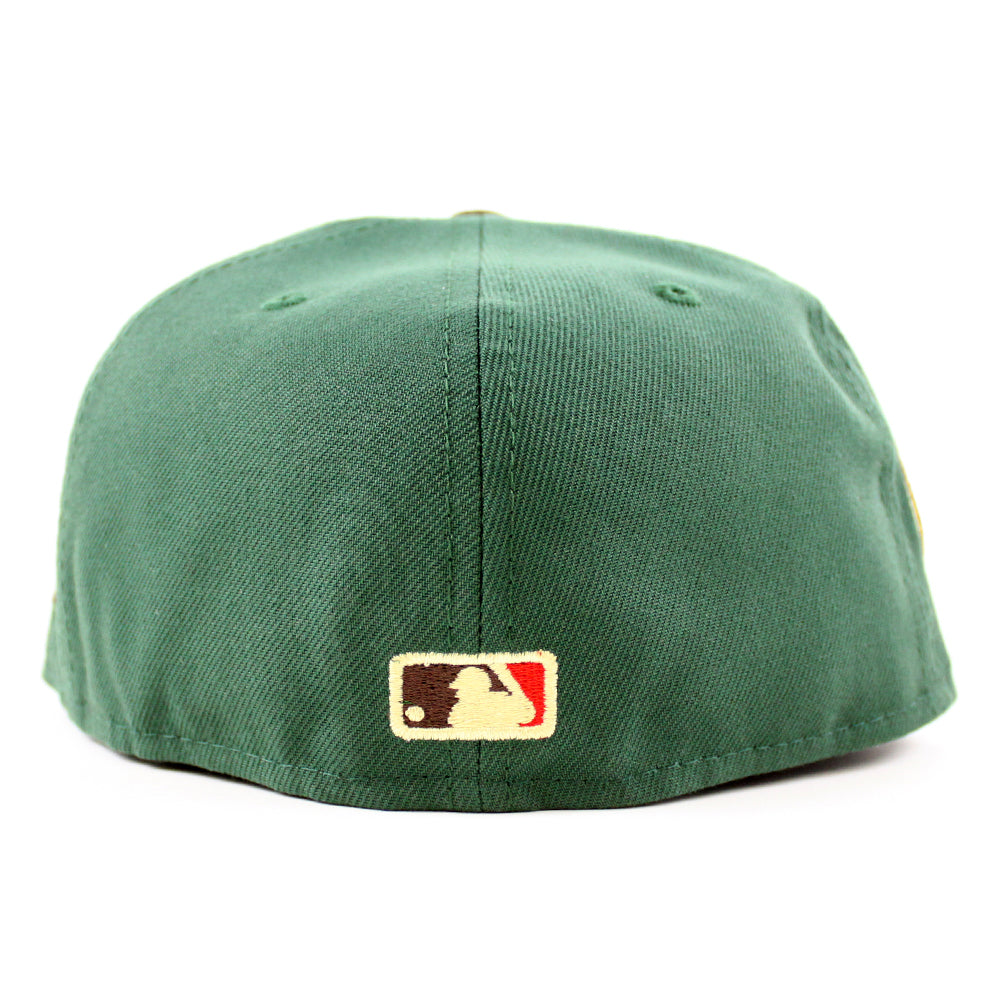 New York Mets Skyline inside Ball New Era Fitted Hat in Mountain Pine Green, Walnut and Pinot Red Under Brim. 24