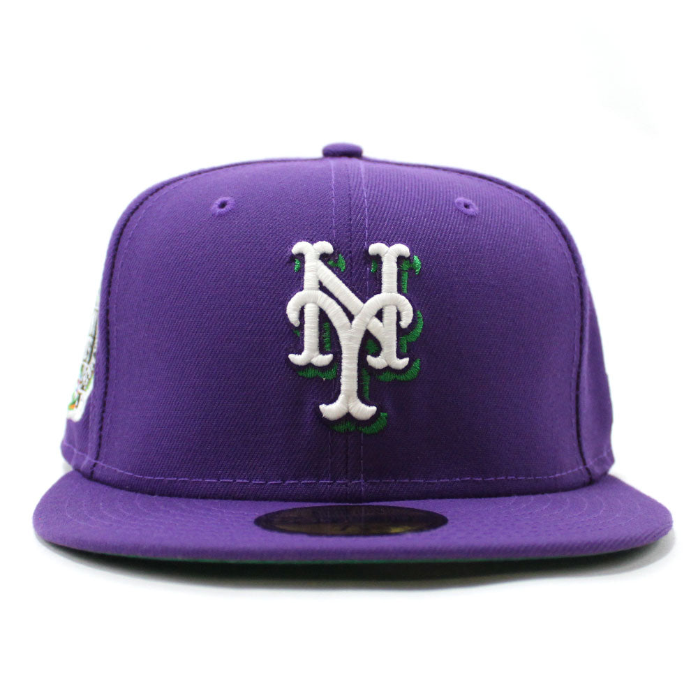 New York Mets Subway Series 59Fifty New Era Fitted Hat in Purple & Green Under Brim.