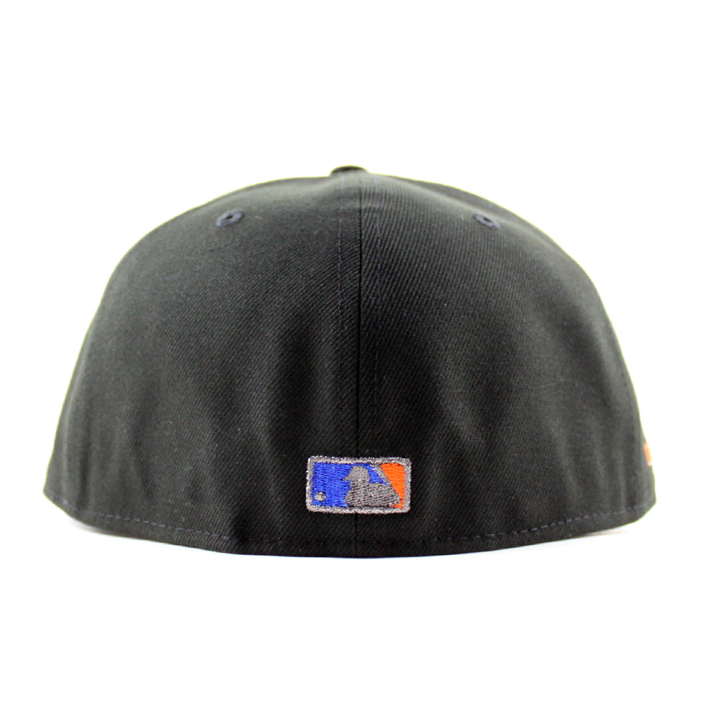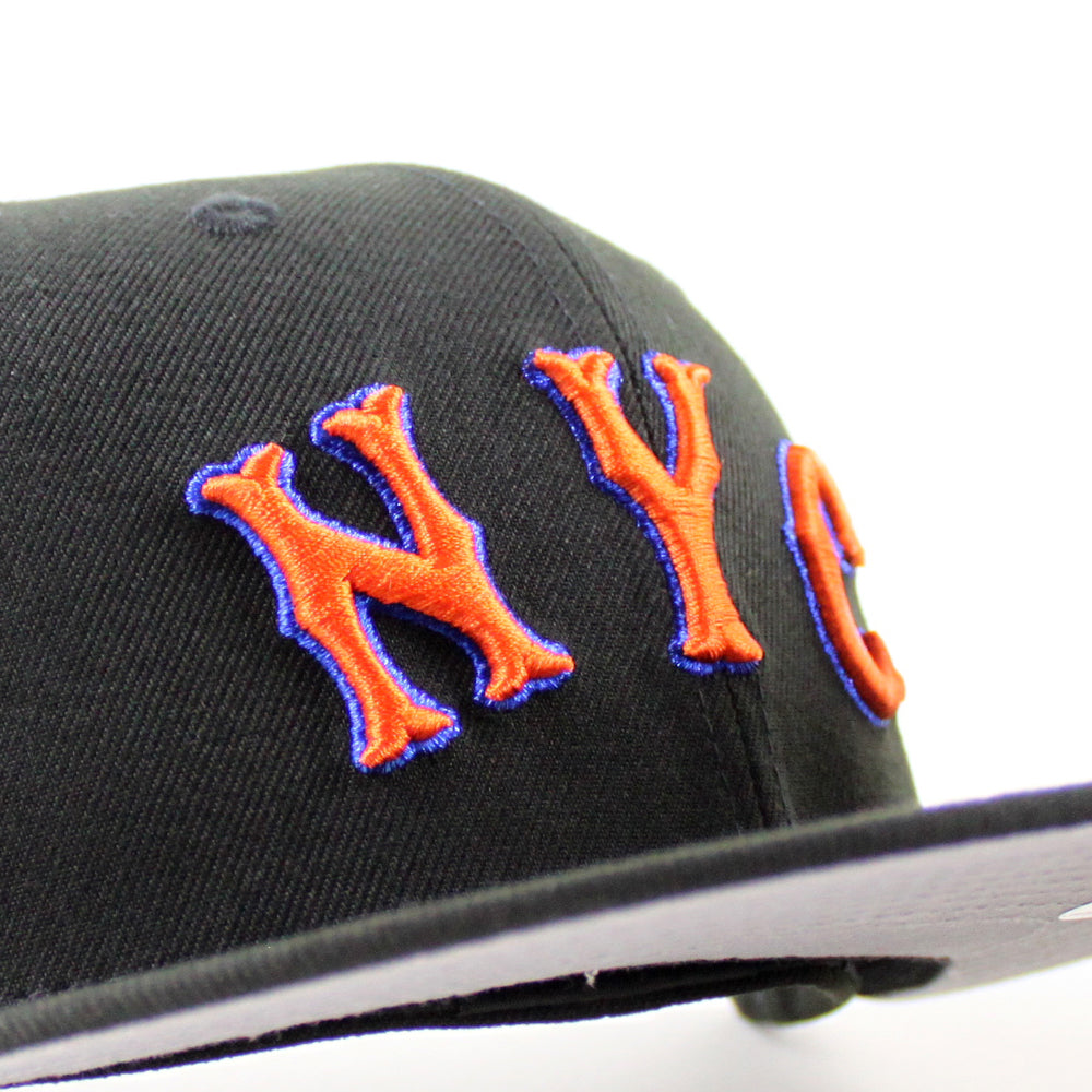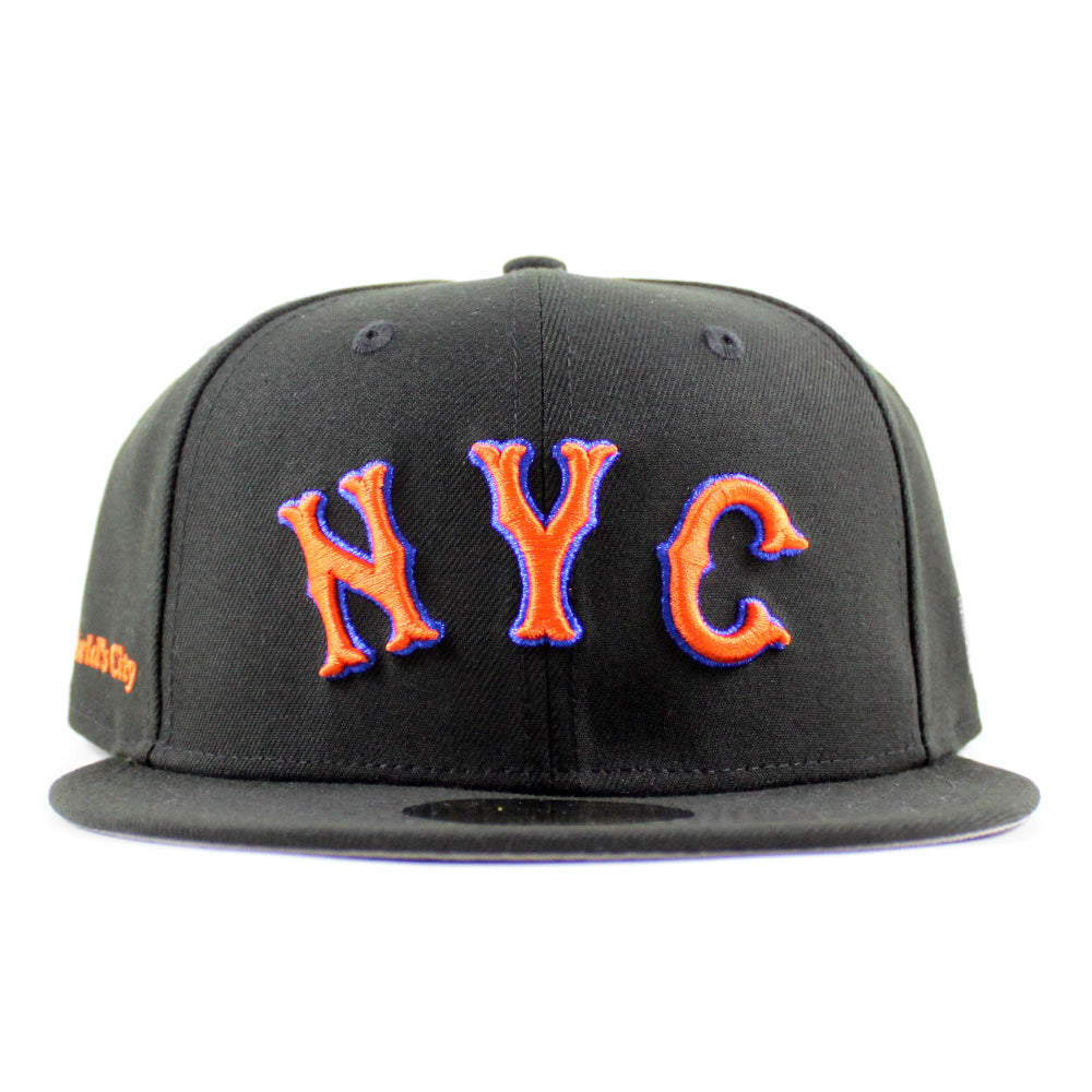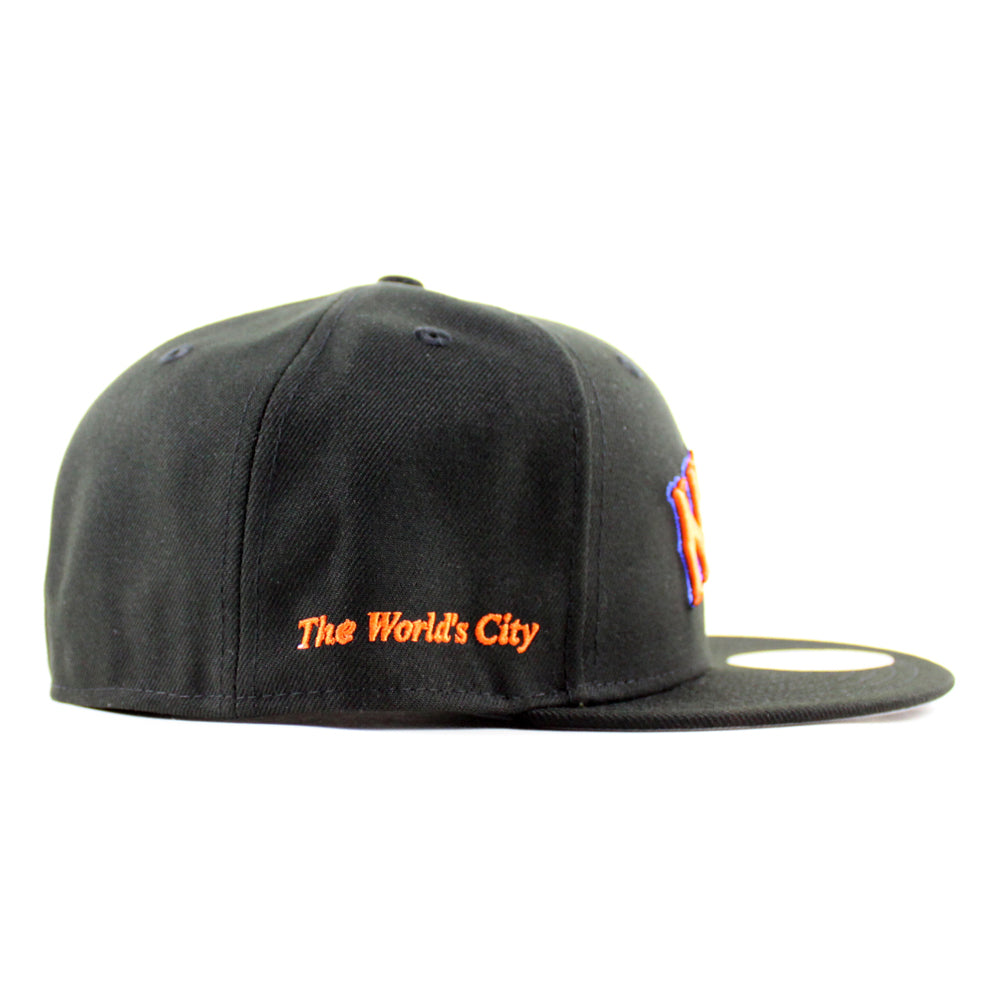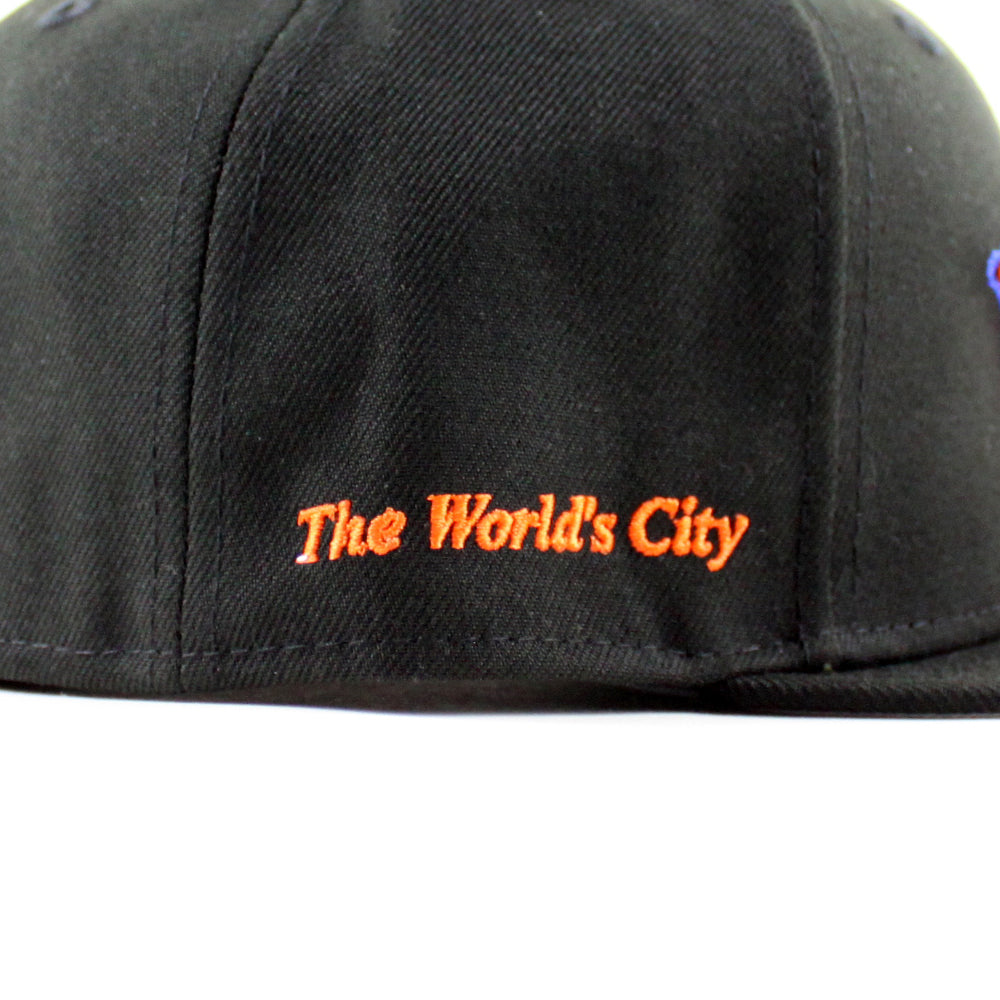 New York Mets The Worlds City Patch New Era Fitted Hat in Black and Gray Under Brim.