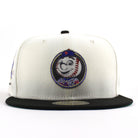New York Mr Mets New Era Fitted Hat in Chrome White, Black and Green Under Brim.