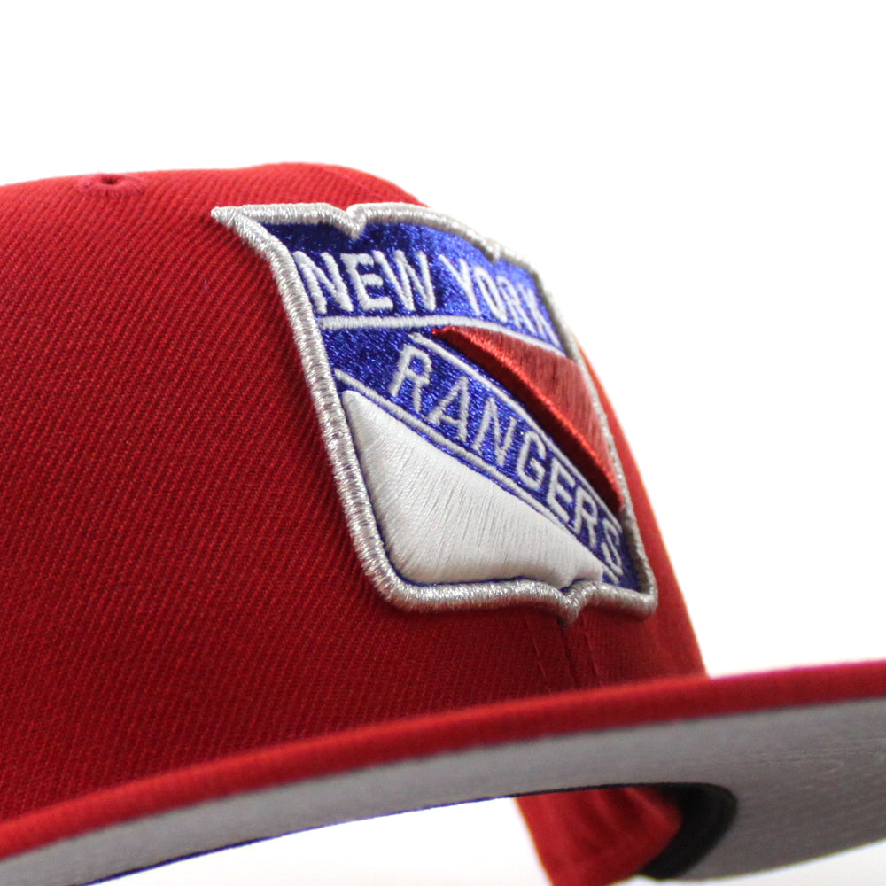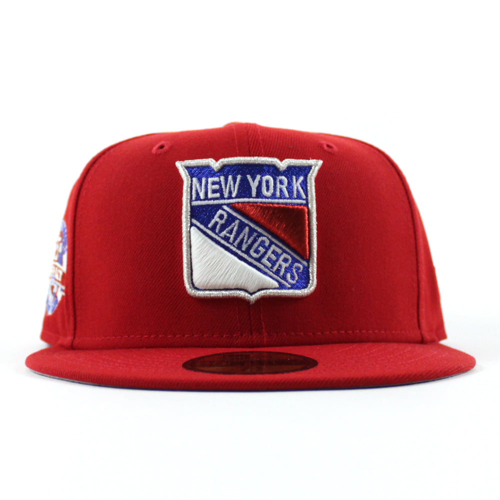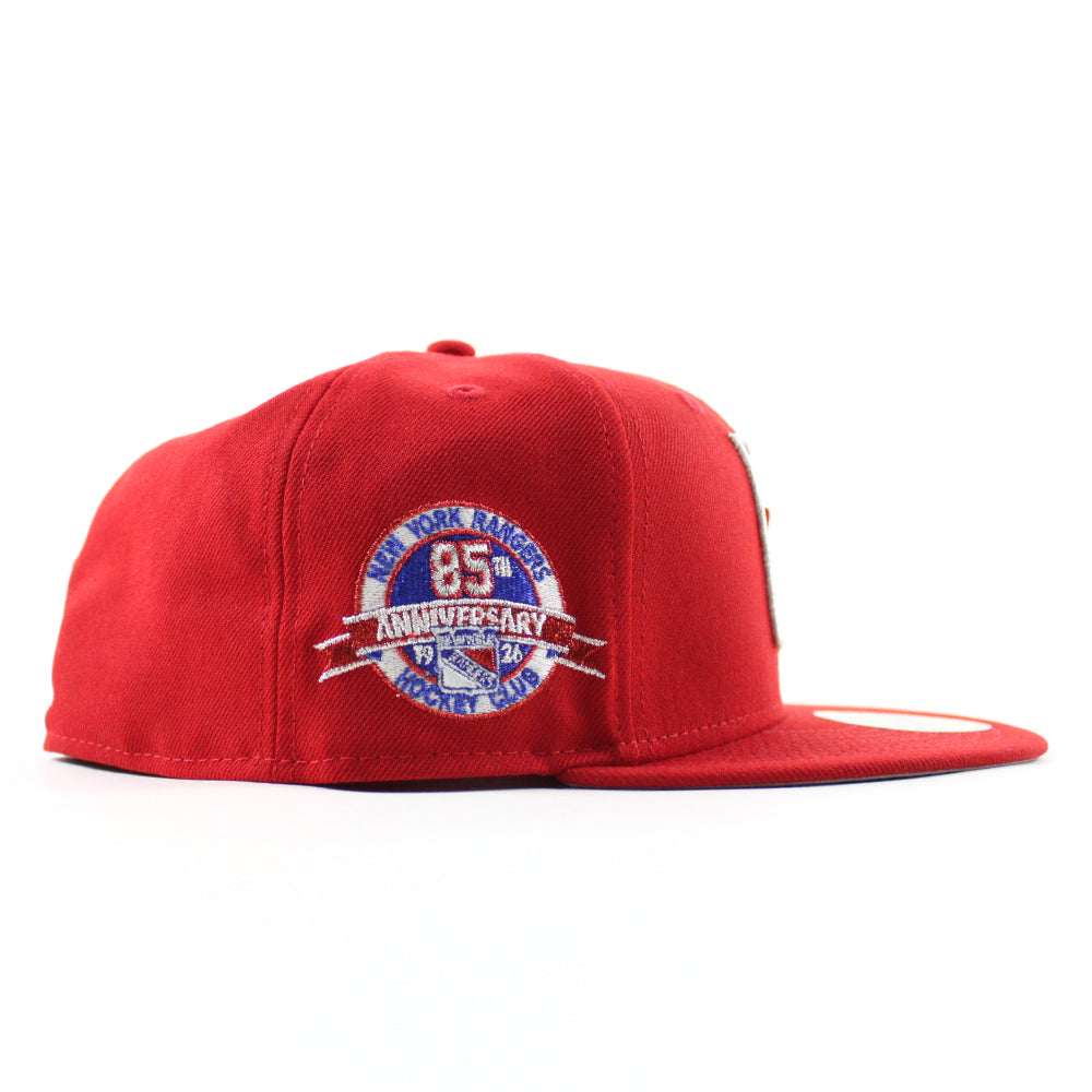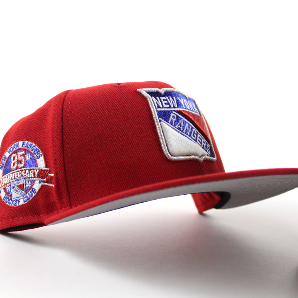 New York Rangers 85TH Anniversary New Era 59Fifty Fitted Hat in Scarlet Red and Gray Under brim.