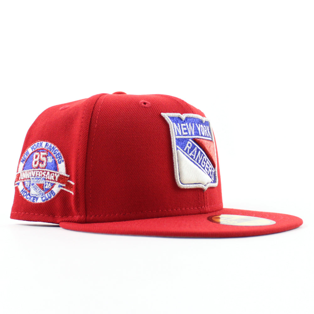 New York Rangers 85TH Anniversary New Era 59Fifty Fitted Hat (Scarlet Red Gray Under brim)