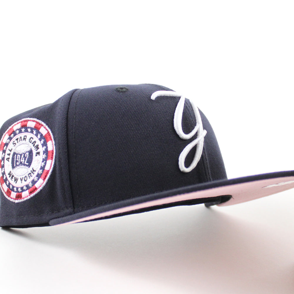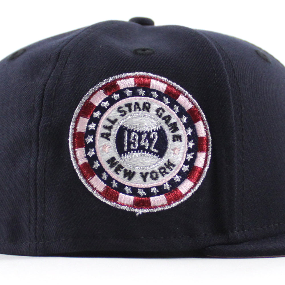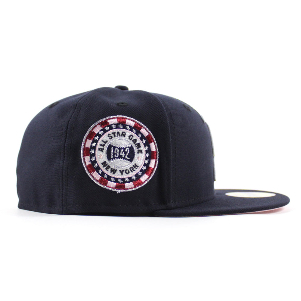New York Yankees 1942 All Star Game Poker Chip Patch New Era 59Fifty Fitted Hat in Navy Pink Under Brim.