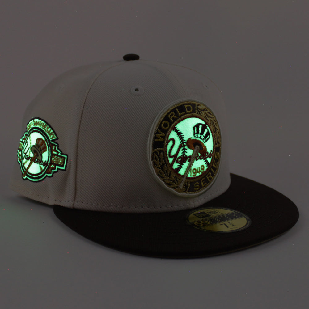 New York Yankees 1949 World Series 100TH ANNIVERSARY New Era 59Fifty Fitted Hat (Glow in the Dark CHROME WHITE BURNT WOOD POLY KHAKI Under Brim)