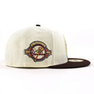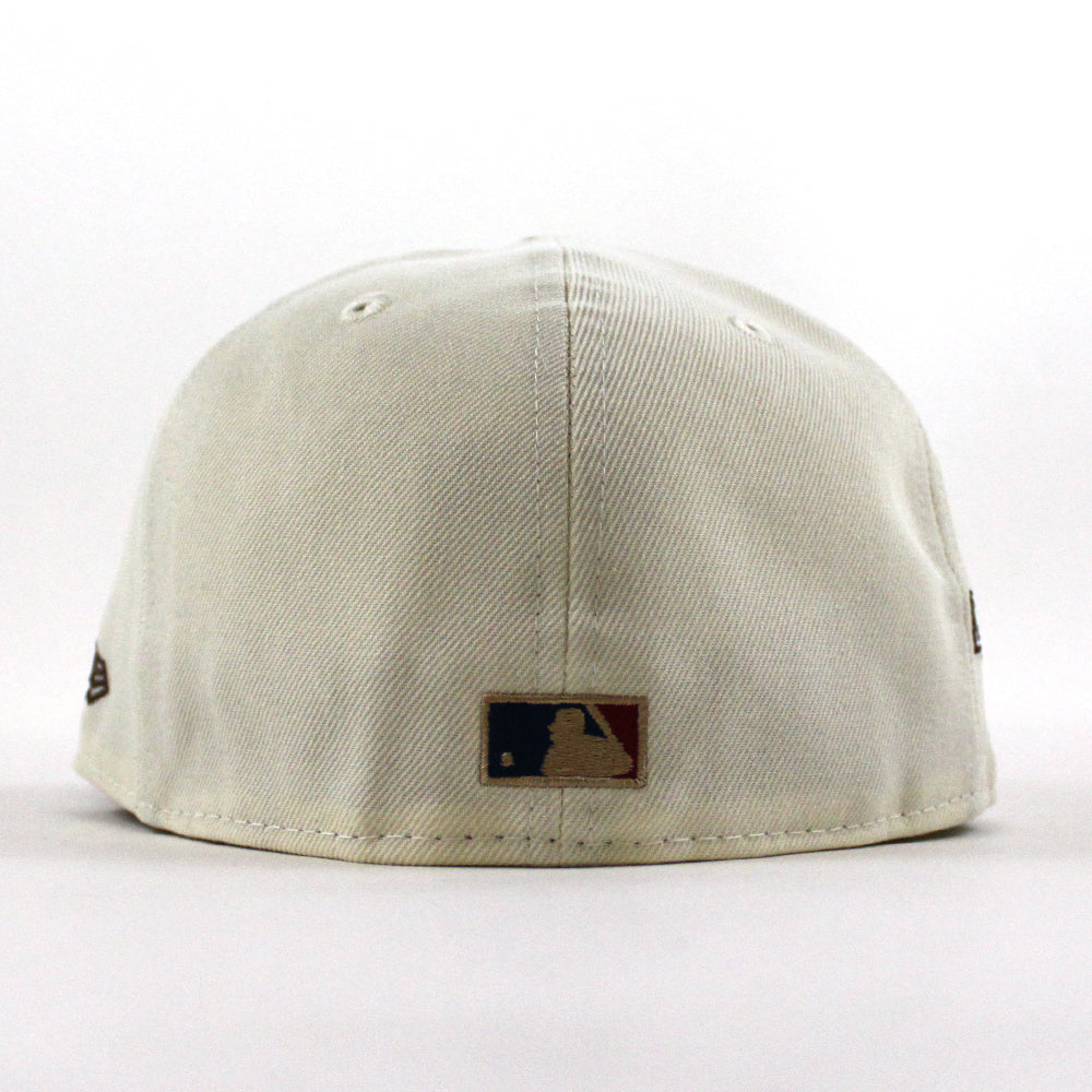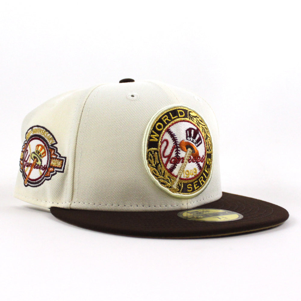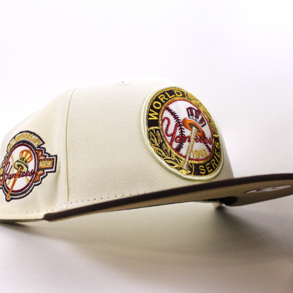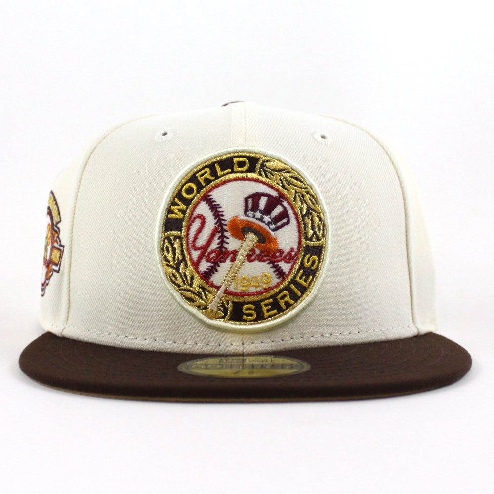 New York Yankees 1949 World Series 100TH Anniversary New Era 59Fifty Fitted Hat in Chrome White, Burnt Wood Brown and Khaki Under Brim.