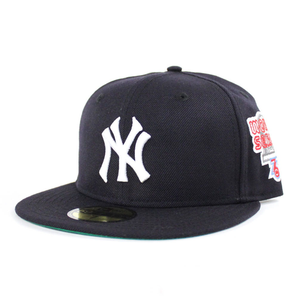New York Yankees 1976 World Series 59Fifty New Era Fitted Hat in Navy with Green Under Brim.