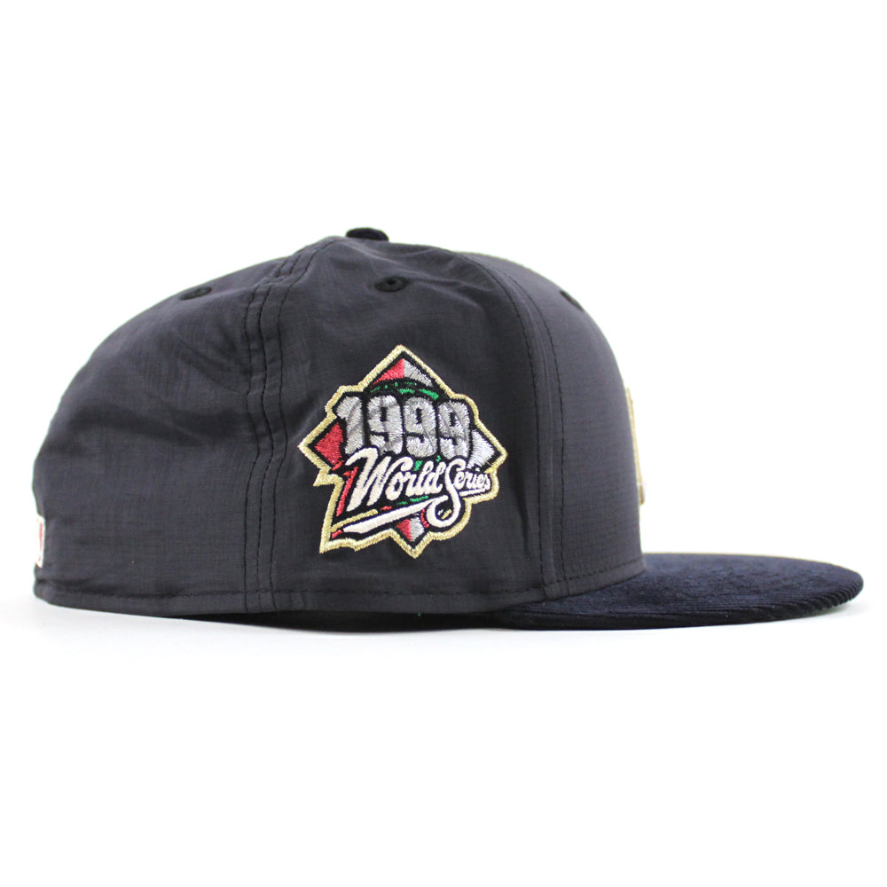 New York Yankees 1999 World Series New Era 59Fifty Fitted Hat (Navy Ripstop Nylon Fabric Corduroy Navy Green Under Brim)