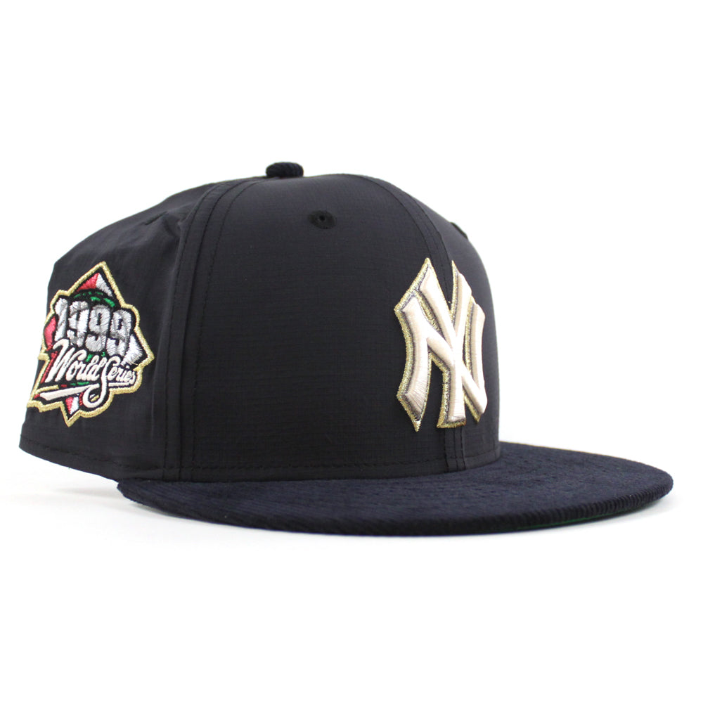 New York Yankees 1999 World Series New Era 59Fifty Fitted Hat in Navy Ripstop Nylon Fabric, Navy Corduroy and Green Under Brim. 25