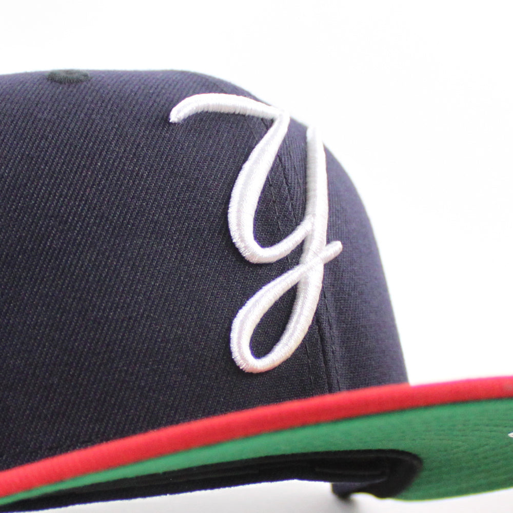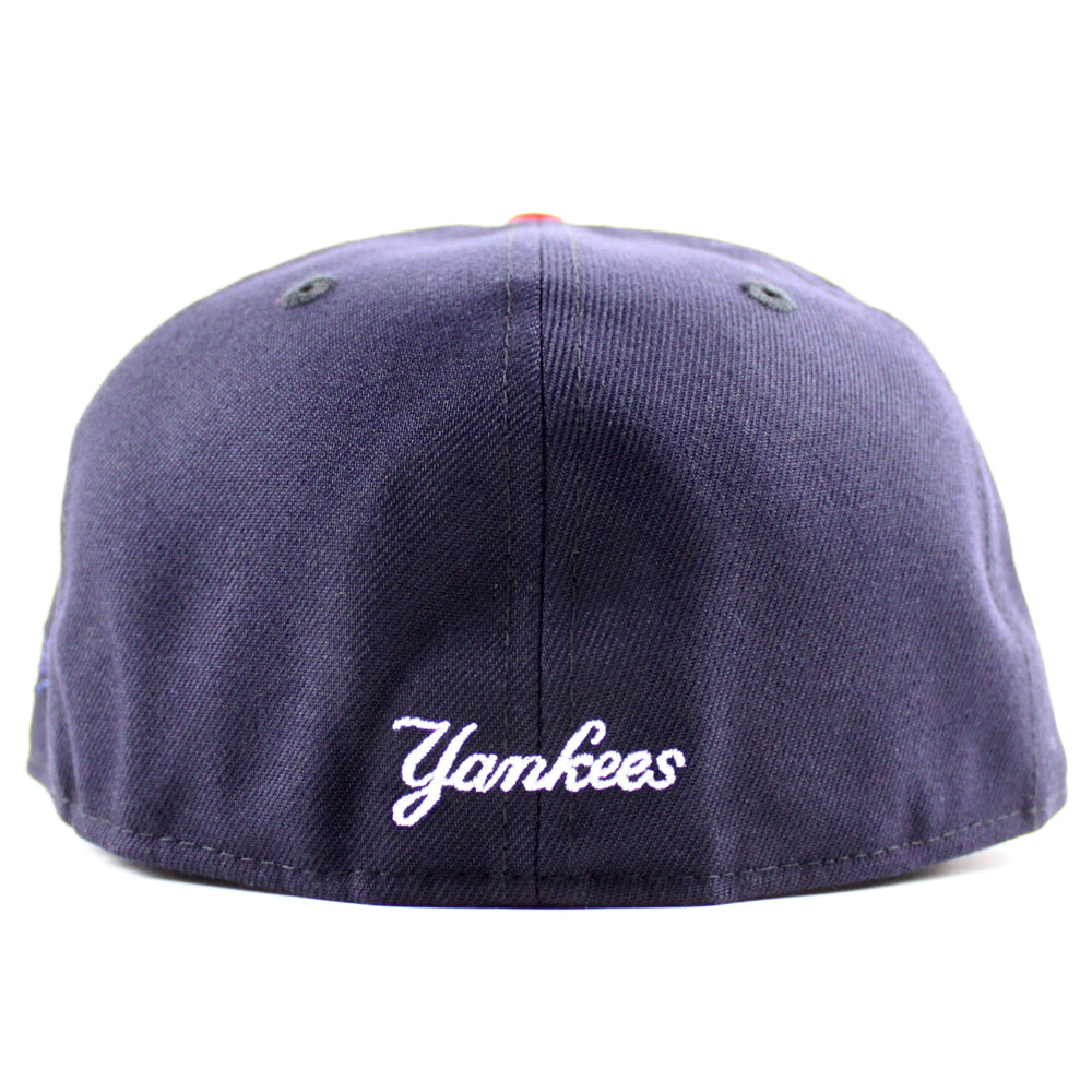 New York Yankees 1999 World Series New Era 59Fifty Fitted Hat in Navy Scarlet Red and Green Under Brim.