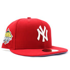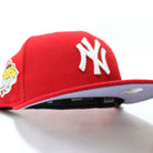 New York Yankees 1999 World Series New Era 59Fifty Fitted Hat in Red & LAVENDER Under Brim.