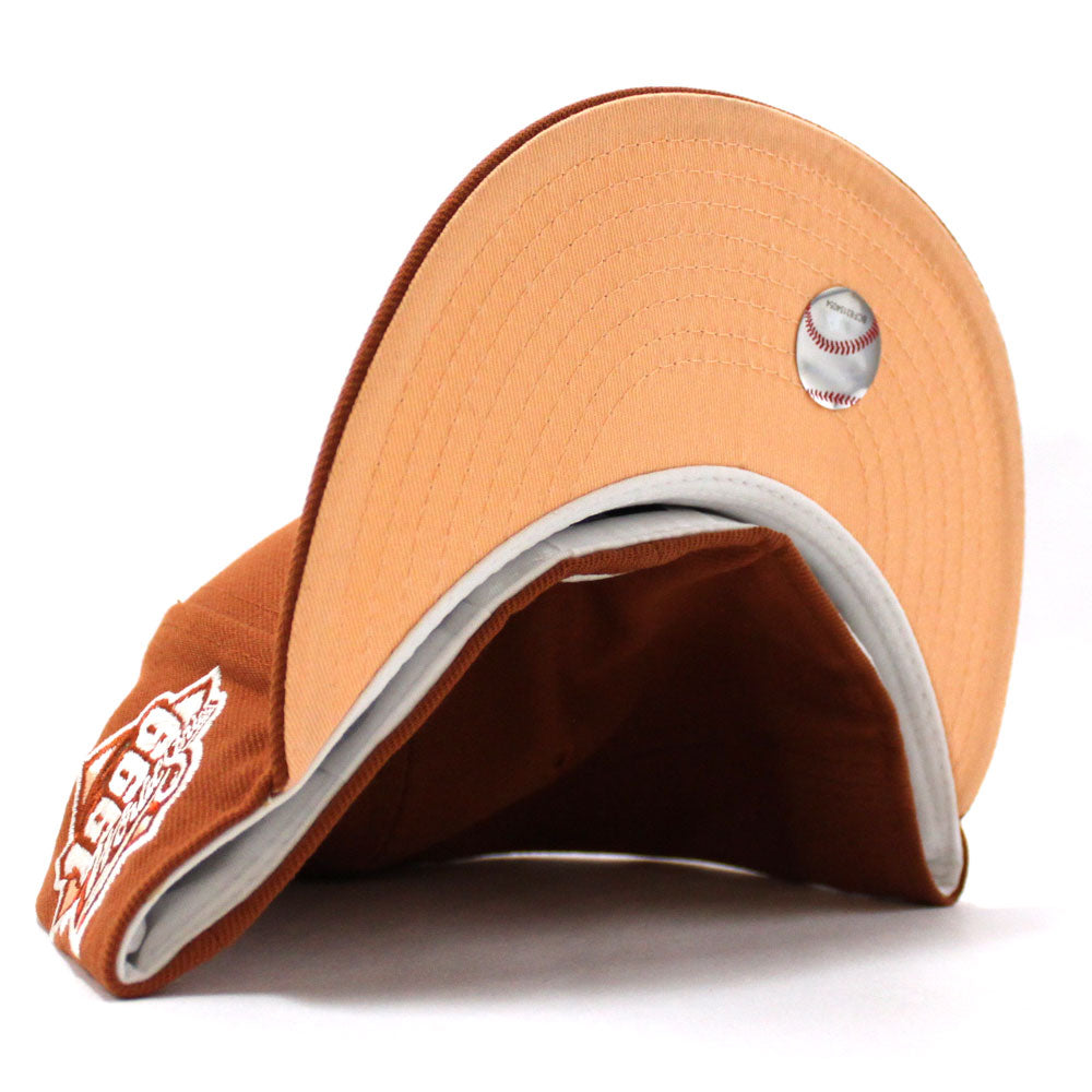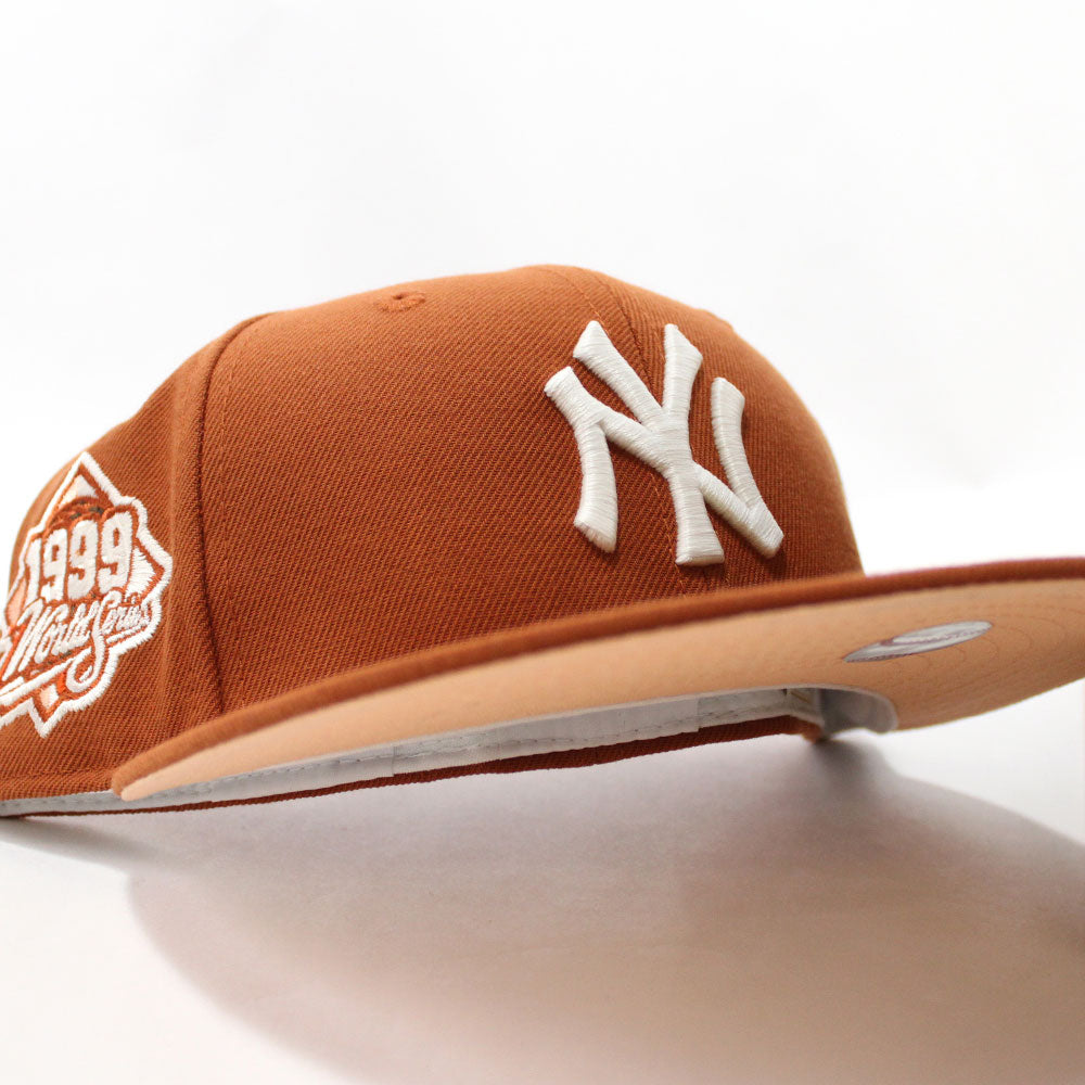 New York Yankees 1999 World Series New Era 59Fifty Fitted Hat in Rust Orange & Pink Under Brim.