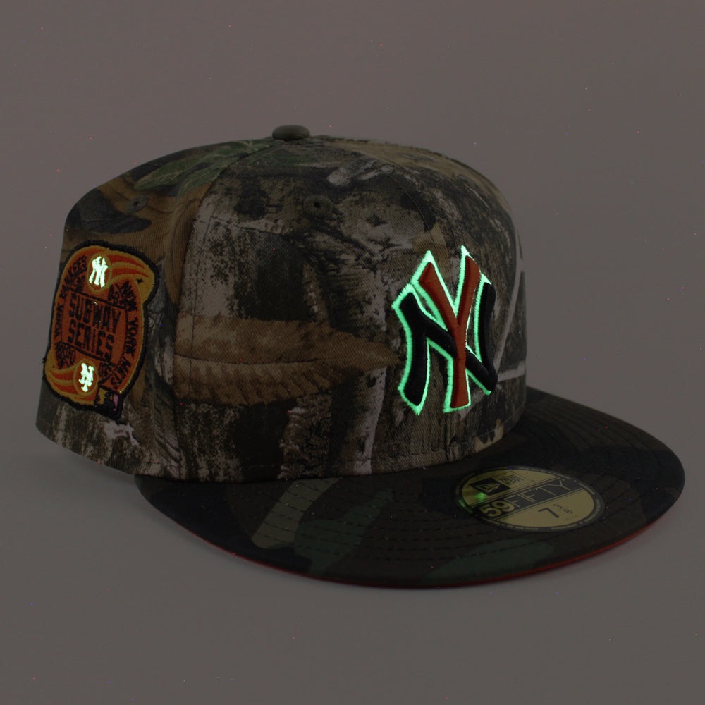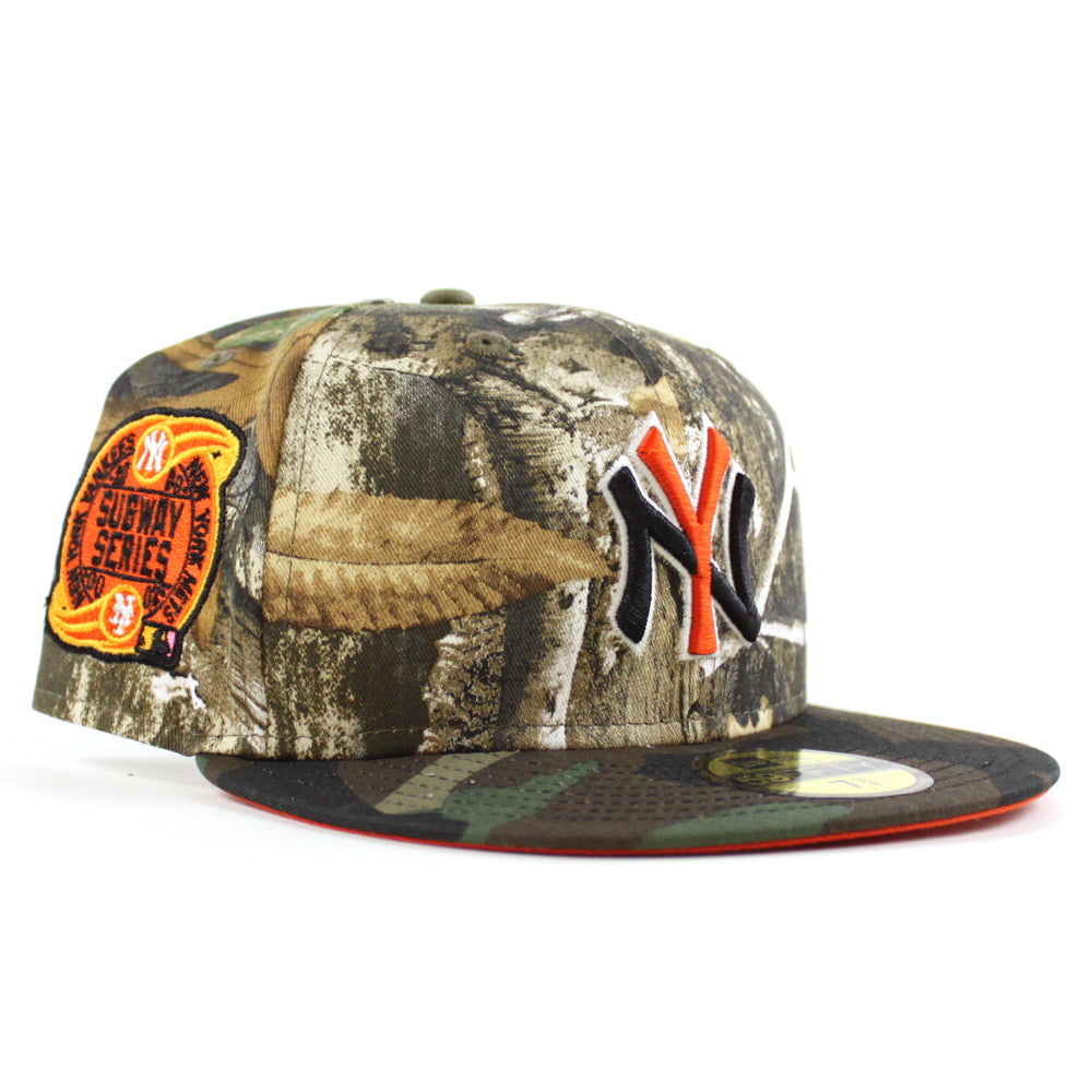 New York Yankees 2000 Subway Series New Era 59Fifty Fitted Hat in RealTree Camo, Woodland Camo and Orange Under Brim.