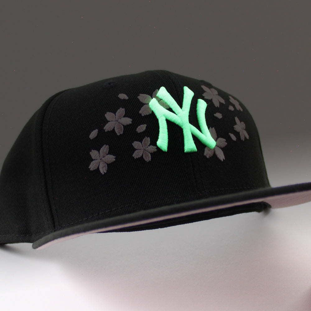 New York Yankees Cherry Blossom New Era 59Fifty Fitted Hat (GITD Black Pink Under Brim)