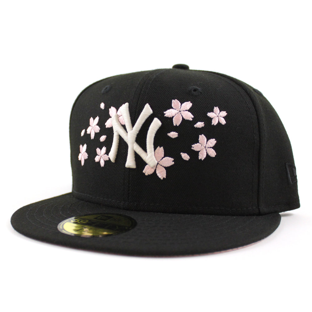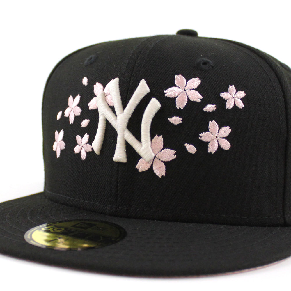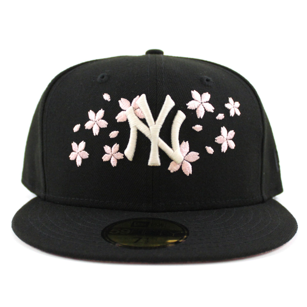 New York Yankees Cherry Blossom New Era 59Fifty Fitted Hat in Black & Pink Under Brim.