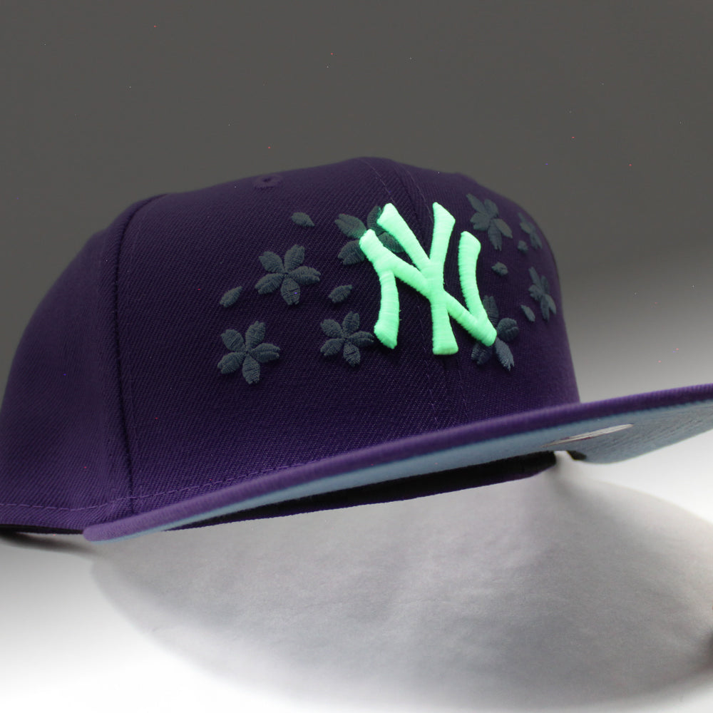 New York Yankees Cherry Blossom New Era 59Fifty Fitted Hat (GITD Purple Sky Blue Under Brim)