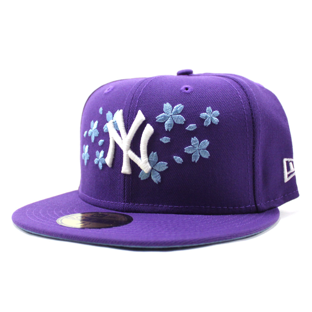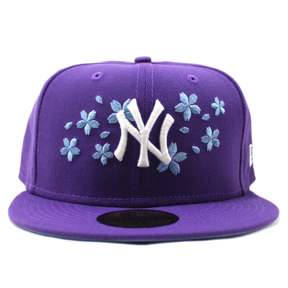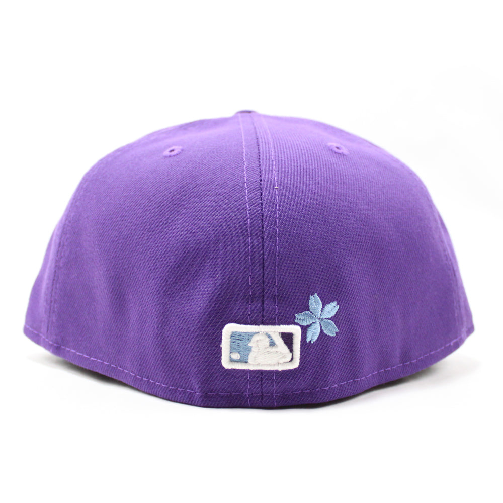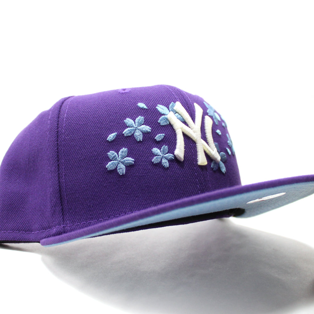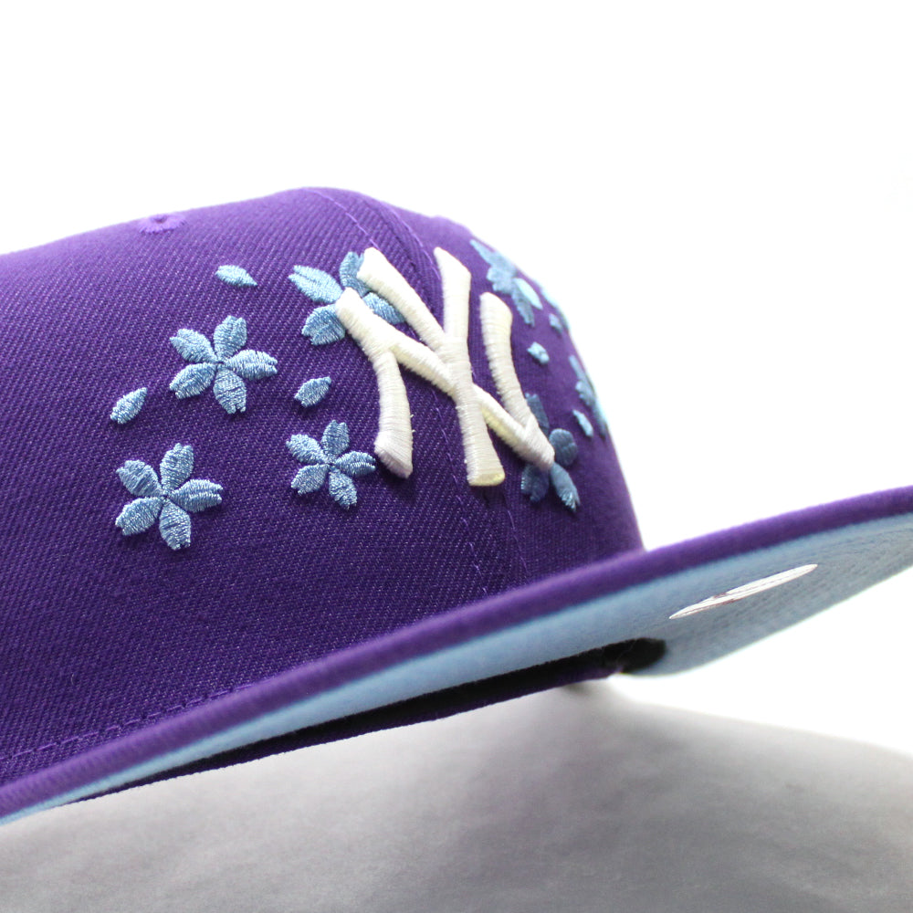 New York Yankees Cherry Blossom New Era 59Fifty Fitted Hat in Purple & Sky Blue Under Brim.
