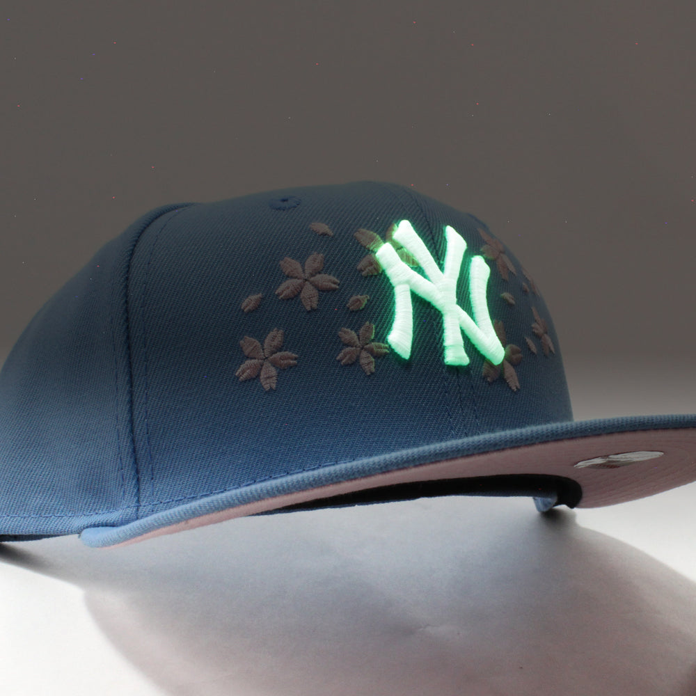 New York Yankees Cherry Blossom New Era 59Fifty Fitted Hat (Glow in the Dark Sky Blue Pink Under Brim)