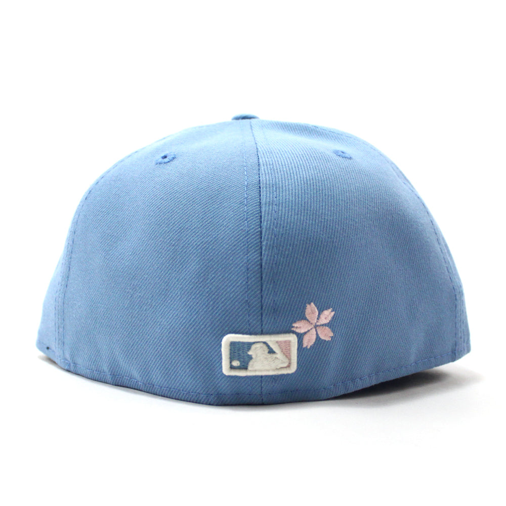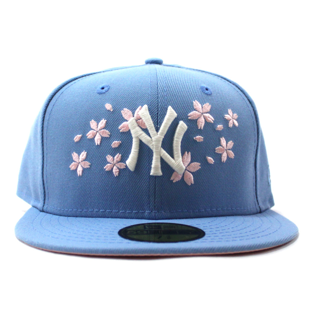 New York Yankees Cherry Blossom New Era 59Fifty Fitted Hat in Sky Blue & Pink Under Brim.