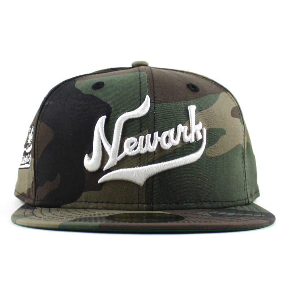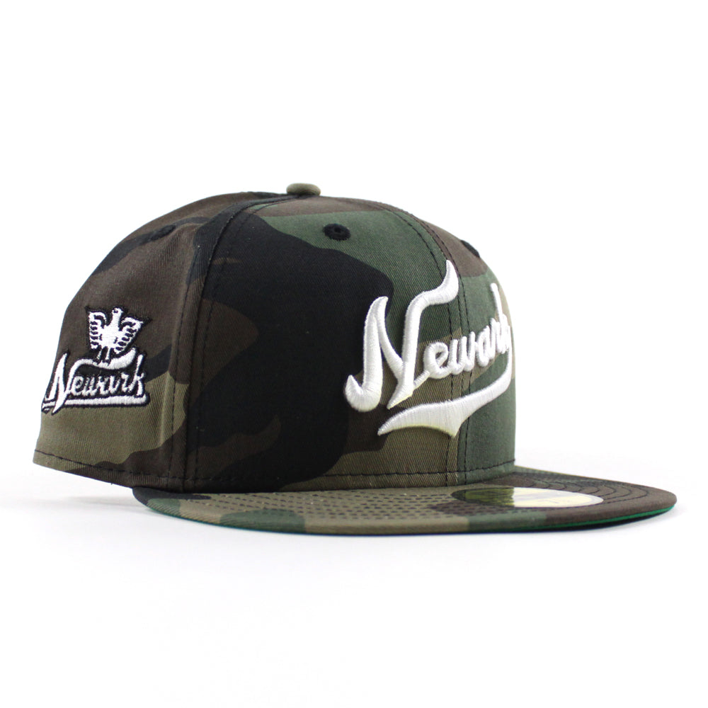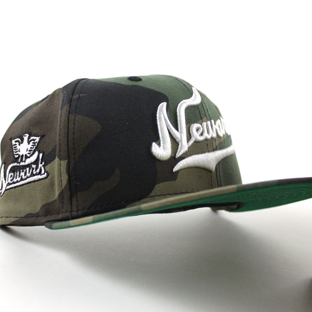 Newark Eagle 59Fifty New Era Fitted Hat in WoodLand Camo and Green Under Brim. Shout out to Brick City Baby!!