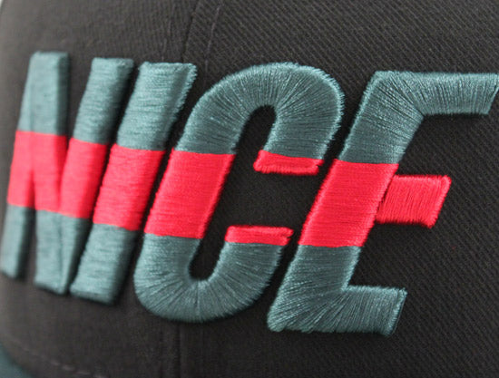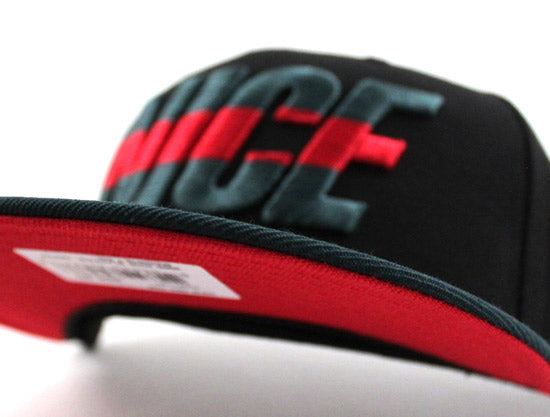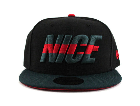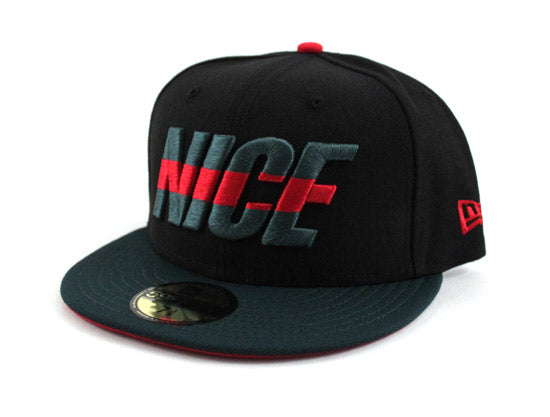 The Nice Gucci New Era custom fitted Cap is back. The NICE New Era Fitted drops in a GUCCI colorway. The crown is Black with a Hunter Green rim and Red NICE logo. This Nice New Era 59Fifty Fitted Hat is black with a "gucci" striped NICE logo. Ecapcity.com is the only official retailer of the Nice logo.