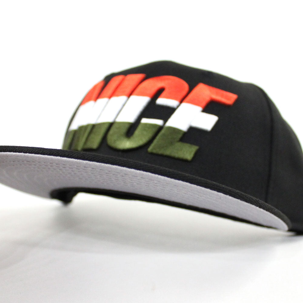OG Custom ECAPCITY Nice 59Fifty New Era fitted hat is back! This Nice fabulous fitted cap is making its comeback in the original Black, White, Orange and Olive with a gray under brim! For Travis Scott Air Jordan 6 Medium Olive Cactus Jack.
