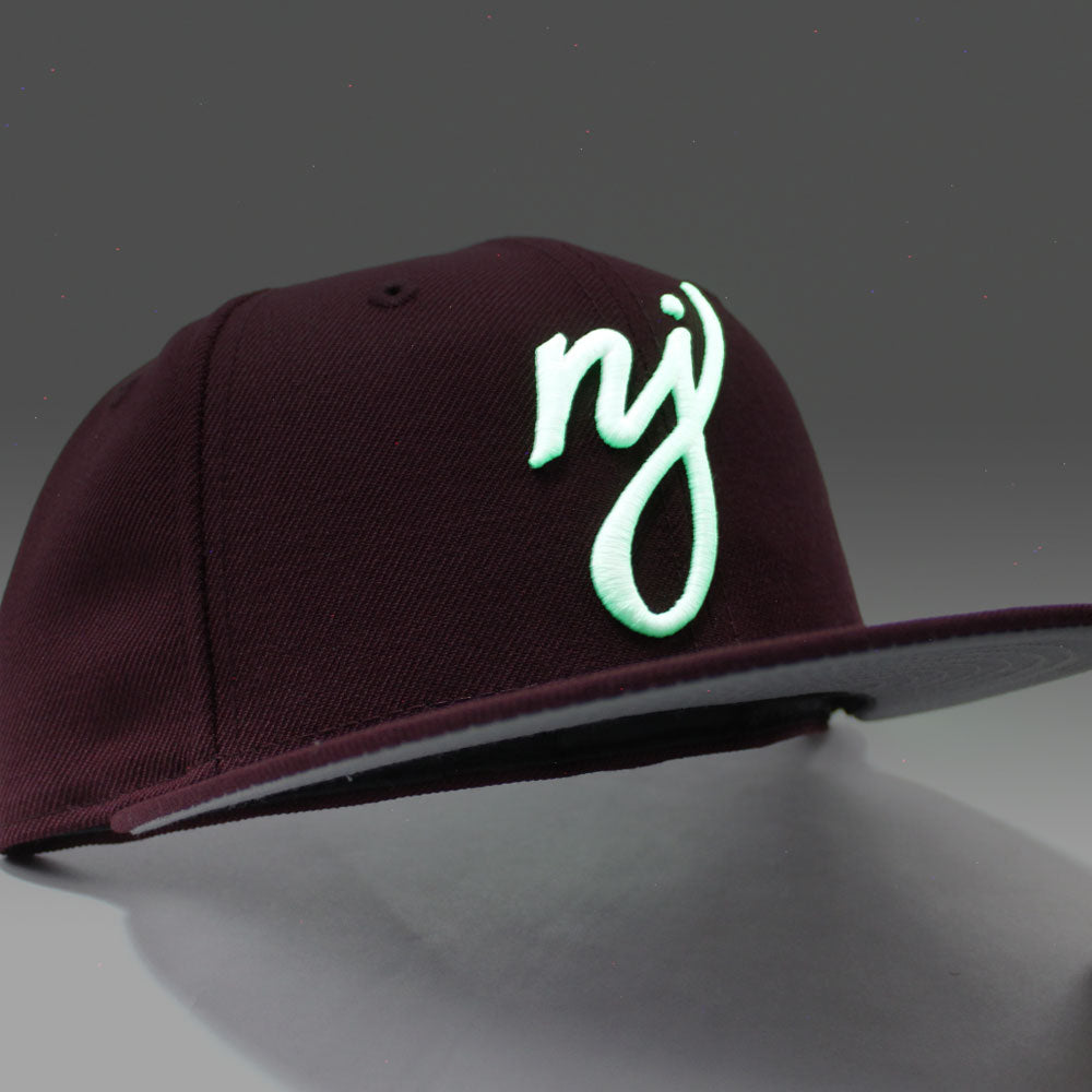 NJ Script New Era 59Fifty Fitted Hat (Glow in the Dark Maroon Gray Under Brim)
