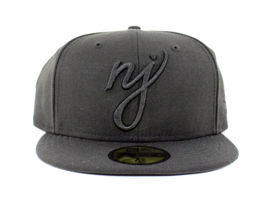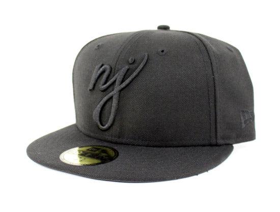 NJ Script New Era 59Fifty Fitted Hats (Black On Black Vigan Leather Under Brim)