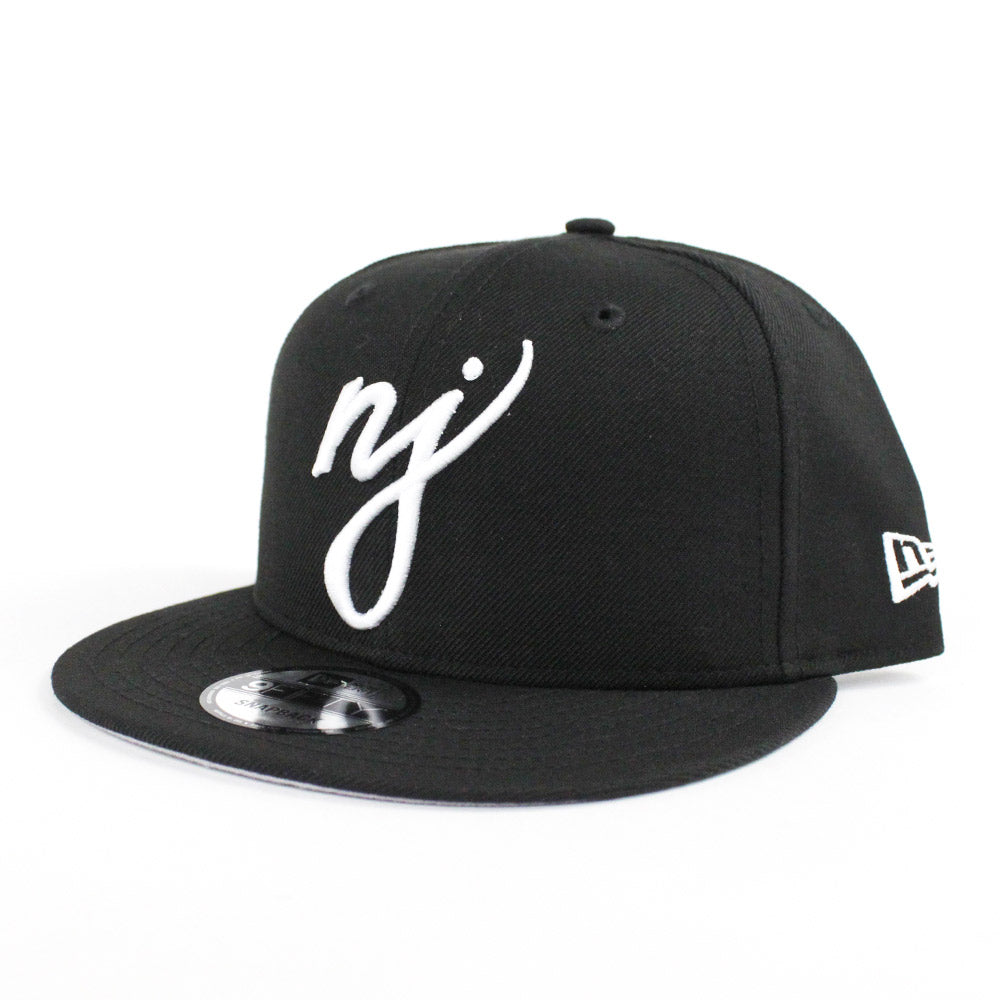 NJ Script Hats are always a big seller. We're born and raised in New Jersey also known as 'The Garden State we show a lot of pride being from of state and love to represent it whenever we get a chance. NJ Script New Era 9Fifty Snapback Hat in Black with Gray Under Brim.