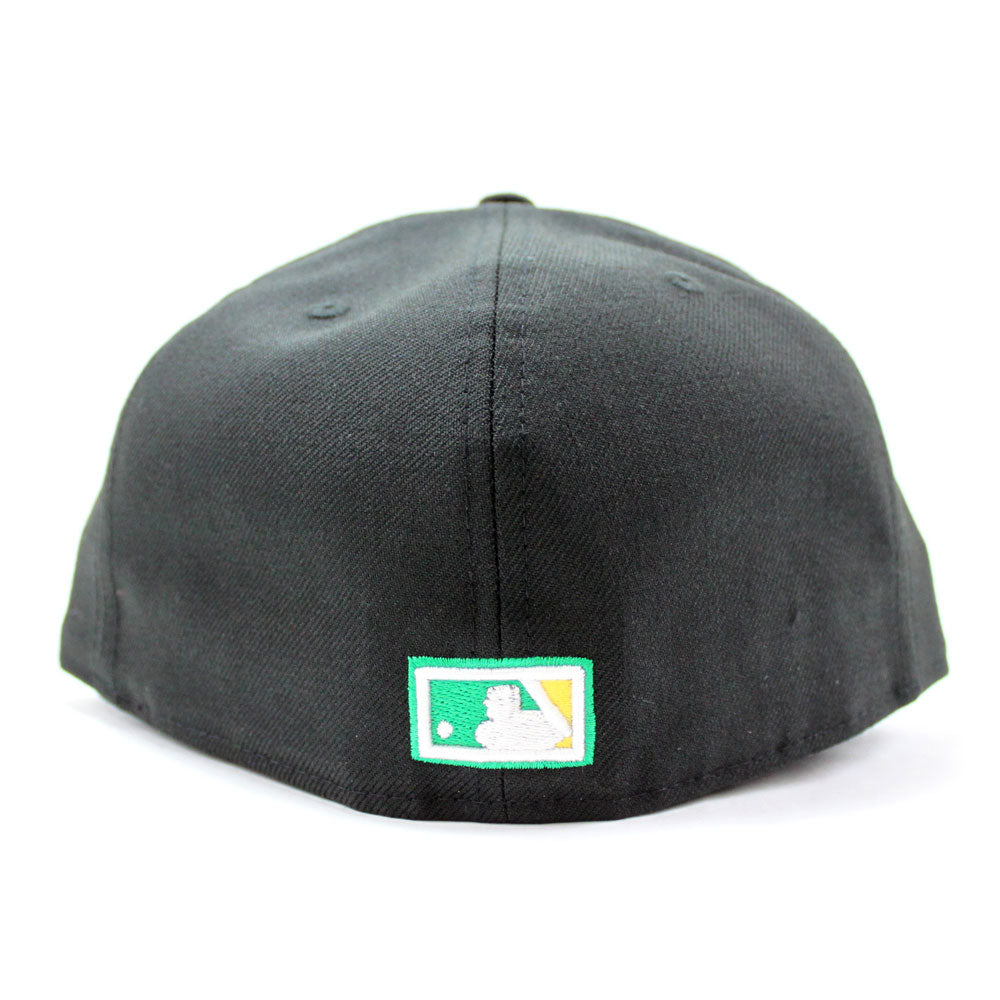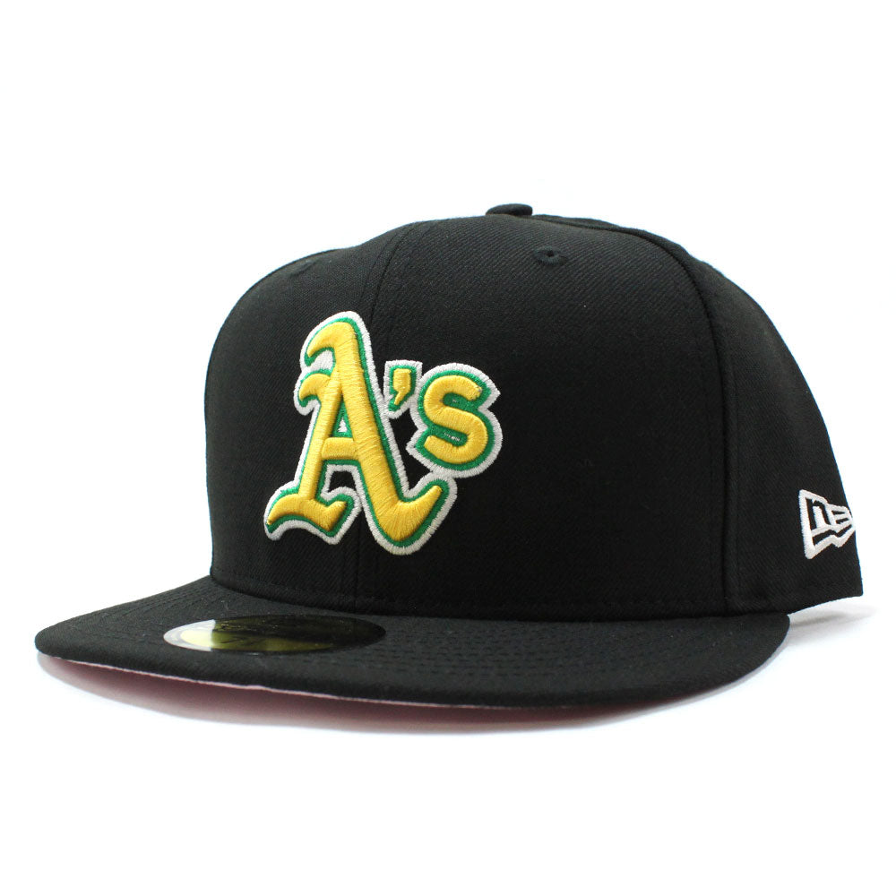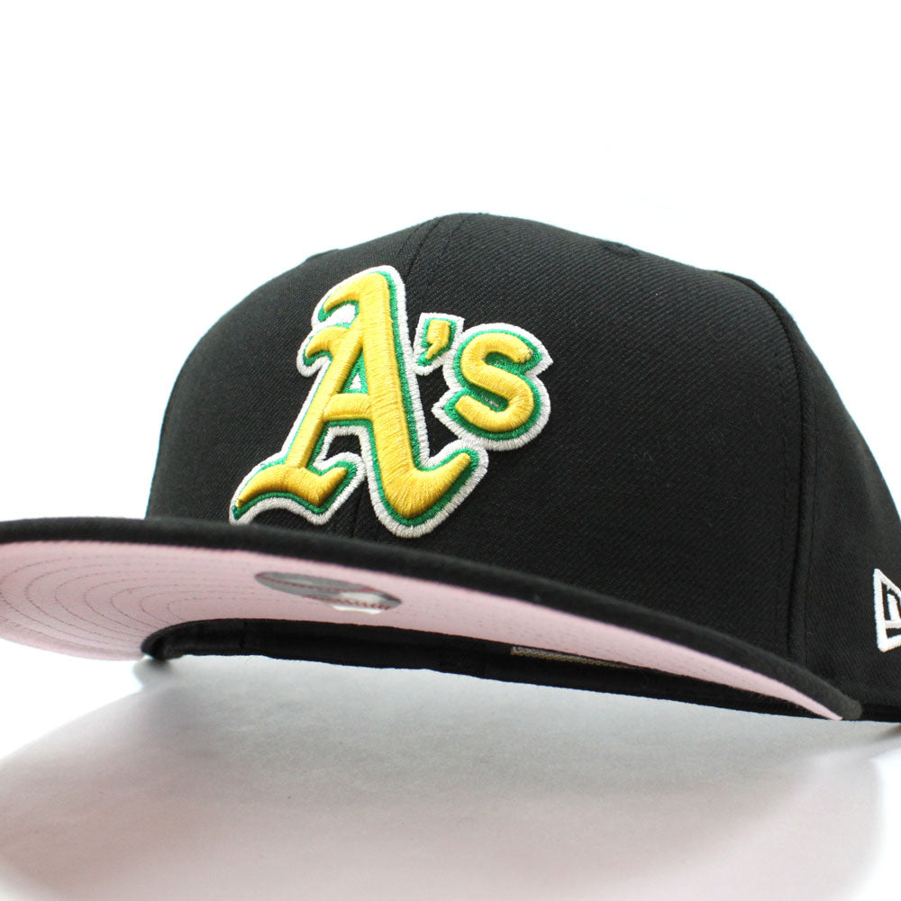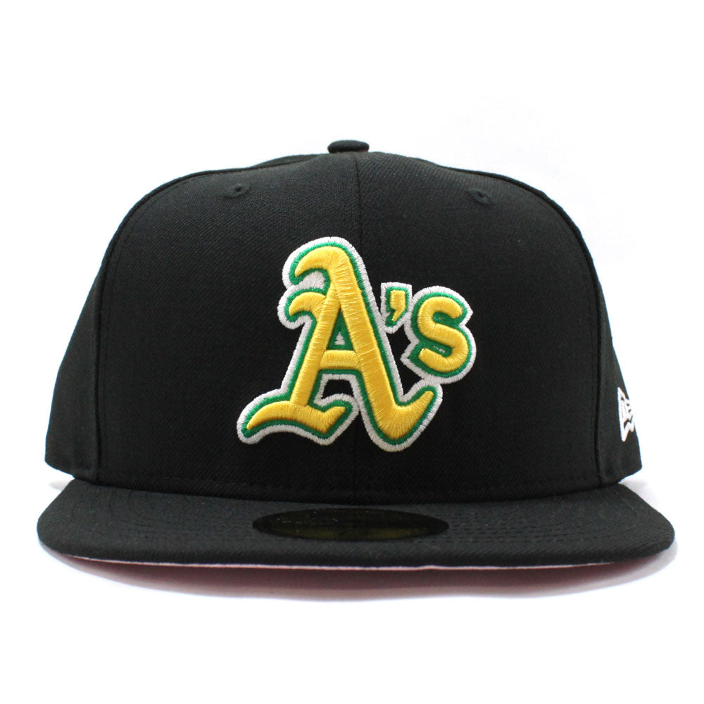 Oakland Athletics New Era 59Fifty Fitted Hat in BLACK & Pink Under Brim.