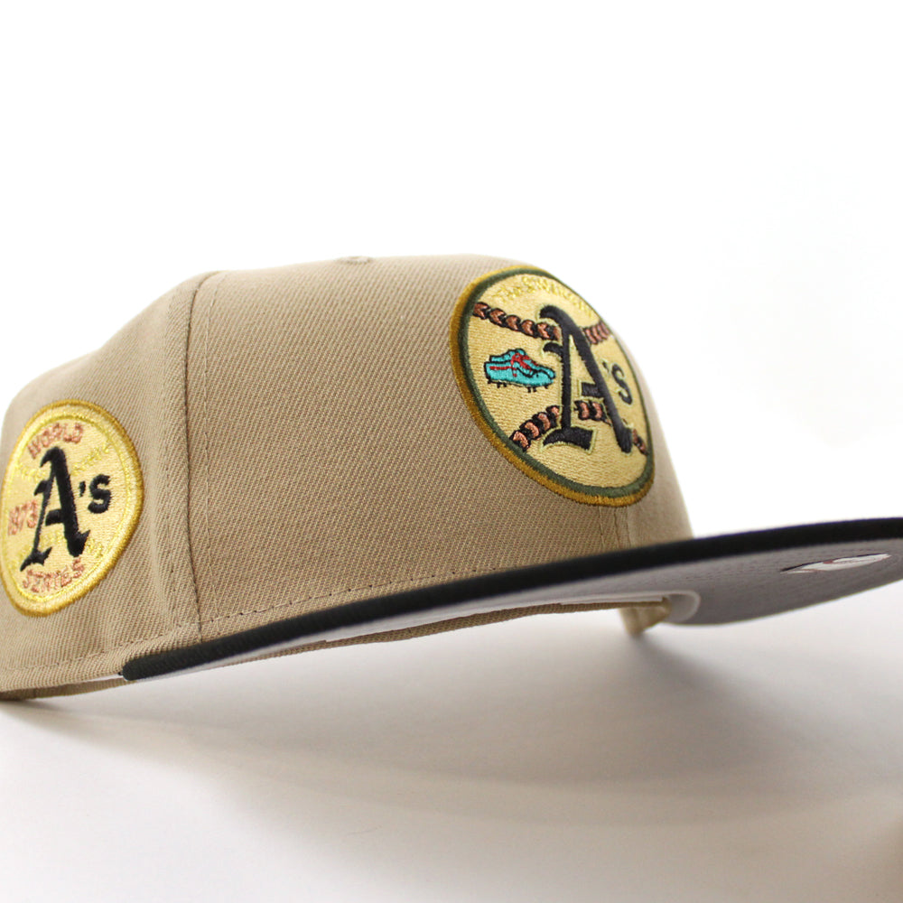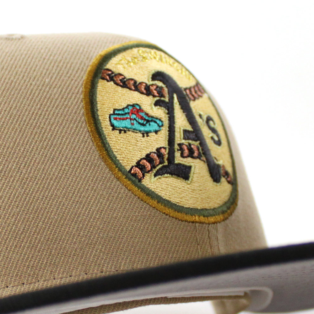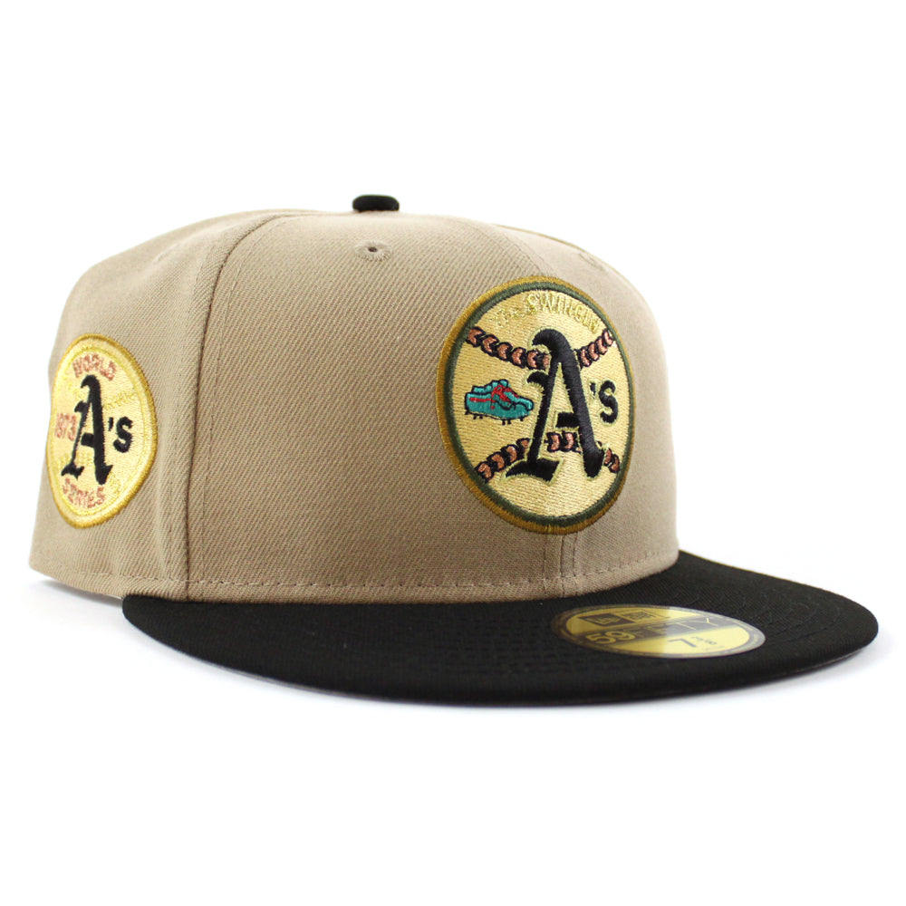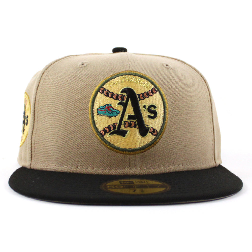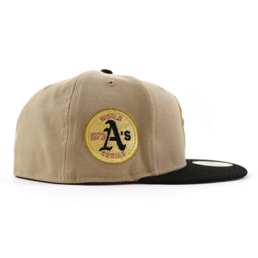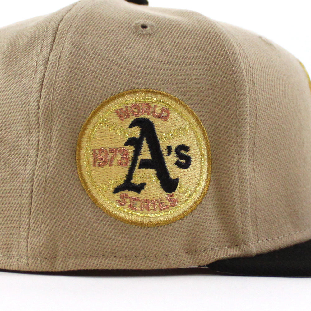 Oakland Athletics 1973 All Star Game Era 59Fifty Fitted Cap in Camel, Black and Gray Under Brim.