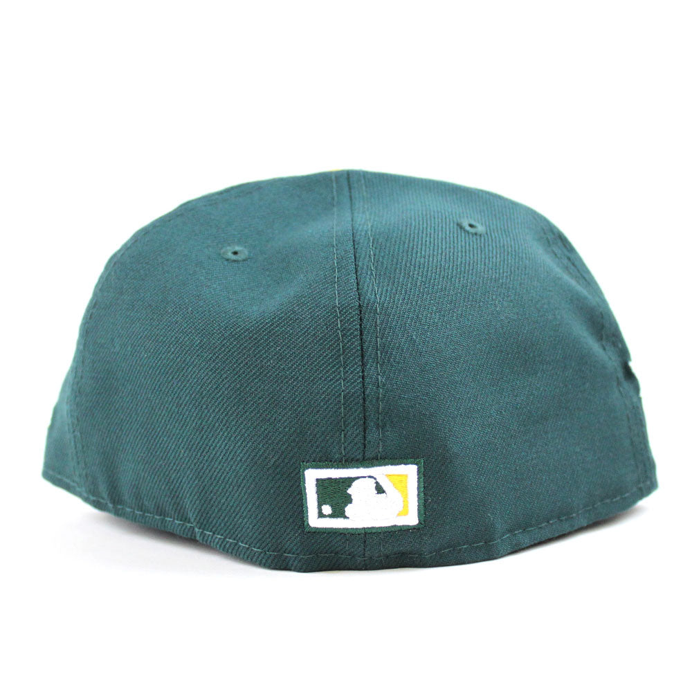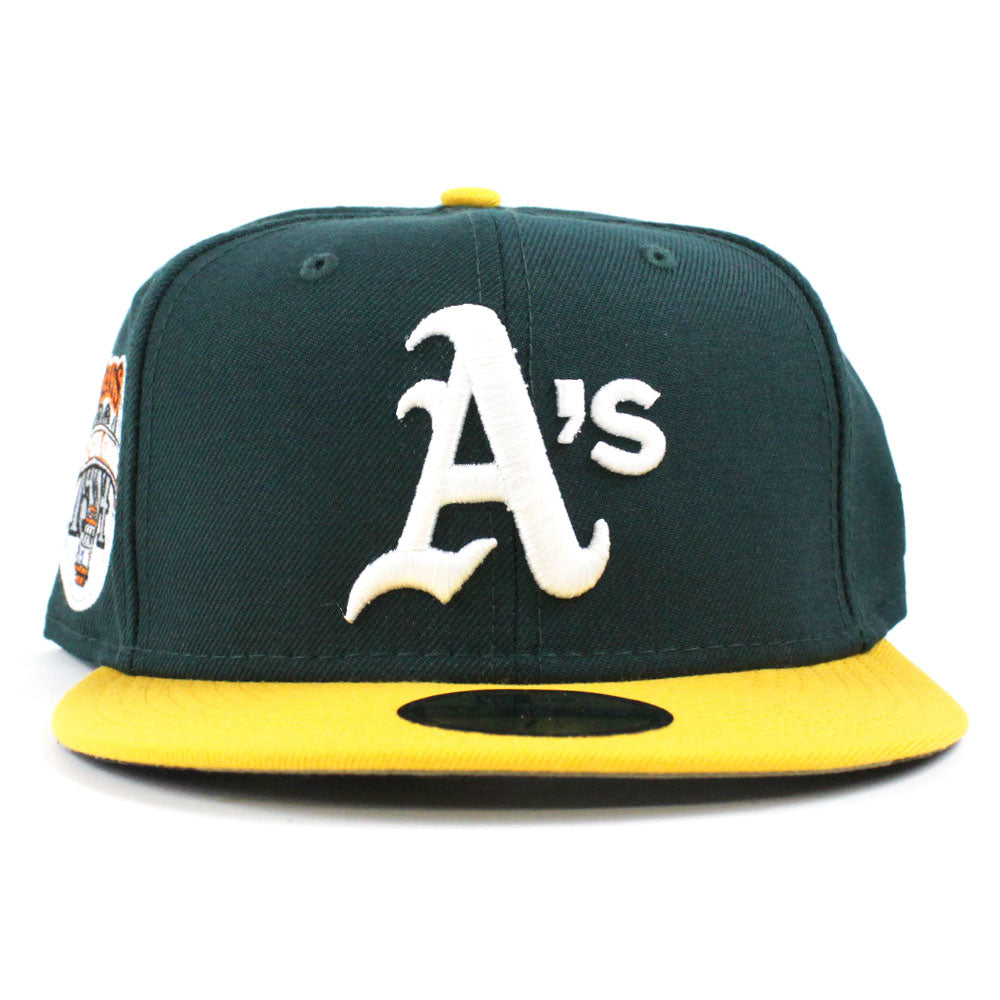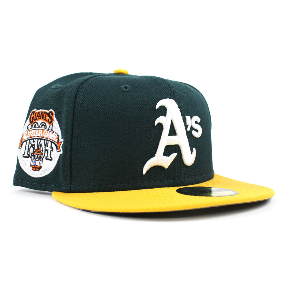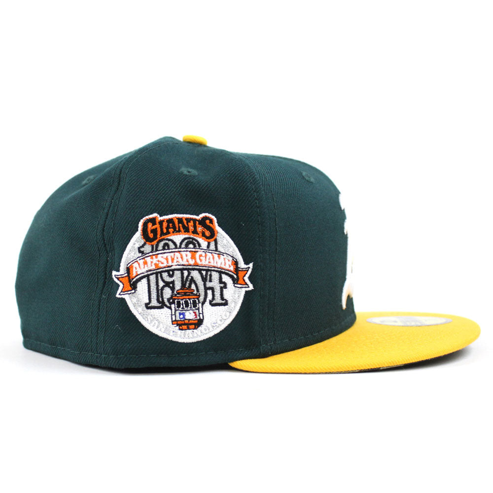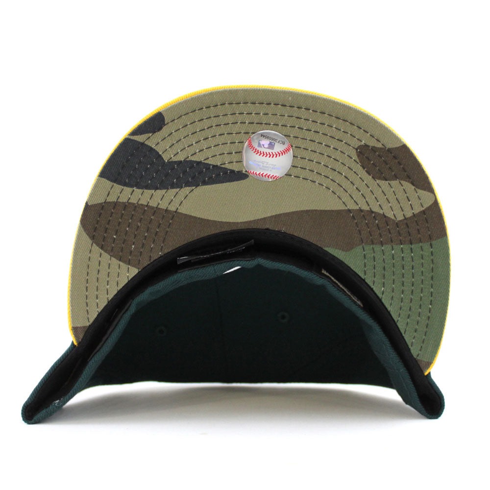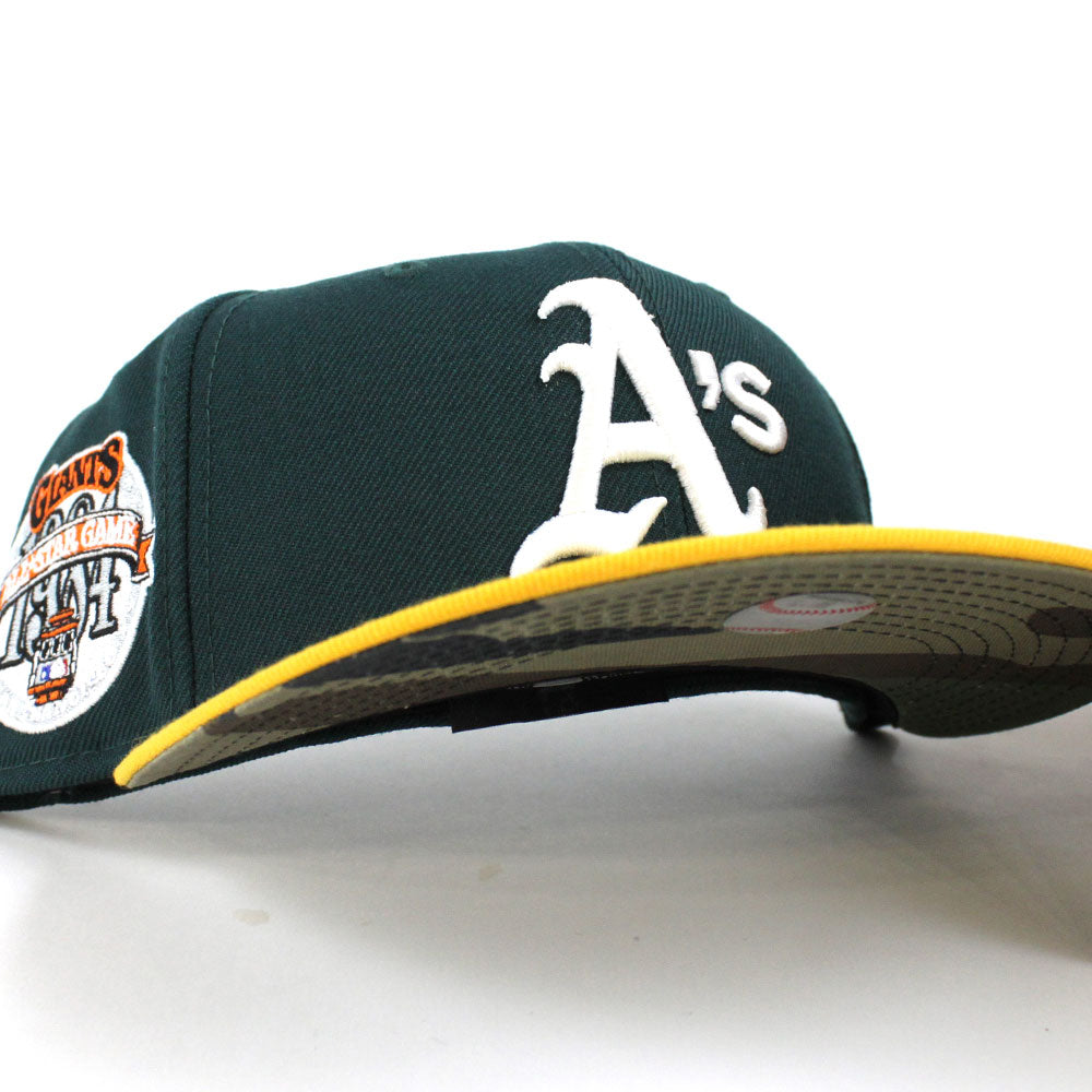 Oakland Athletics 1984 All-Star Game New Era 59Fifty Fitted Hat in Green and Yellow with Camo Under Brim.