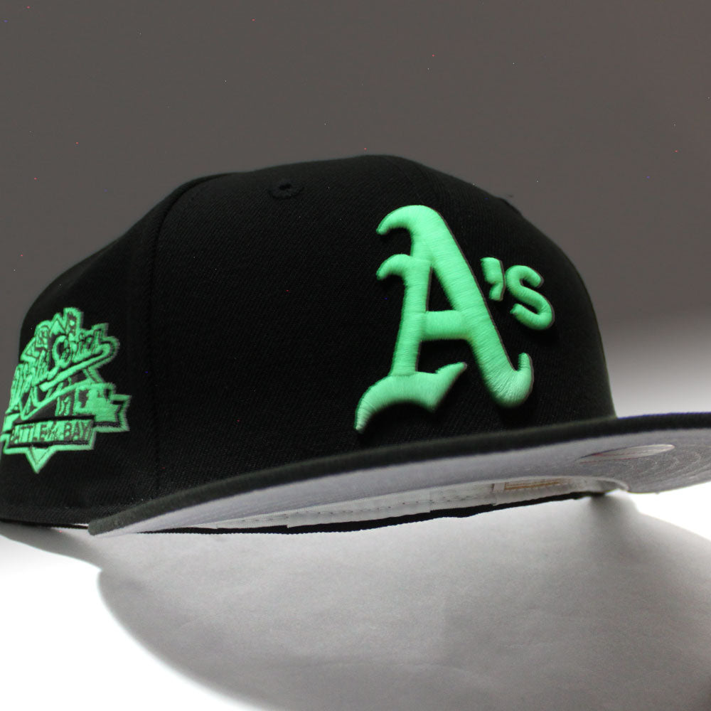 Oakland Athletics 1989 Battle of the Bay World Series New Era 59Fifty Fitted Hat (Glow in the Dark Black Gray Under Brim)