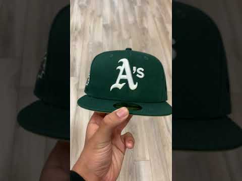 Oakland Athletics 1989 BATTLE OF THE BAY World Series New Era 59Fifty Fitted Hat in Green with Soft Yellow Under Brim.