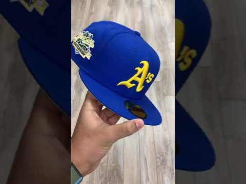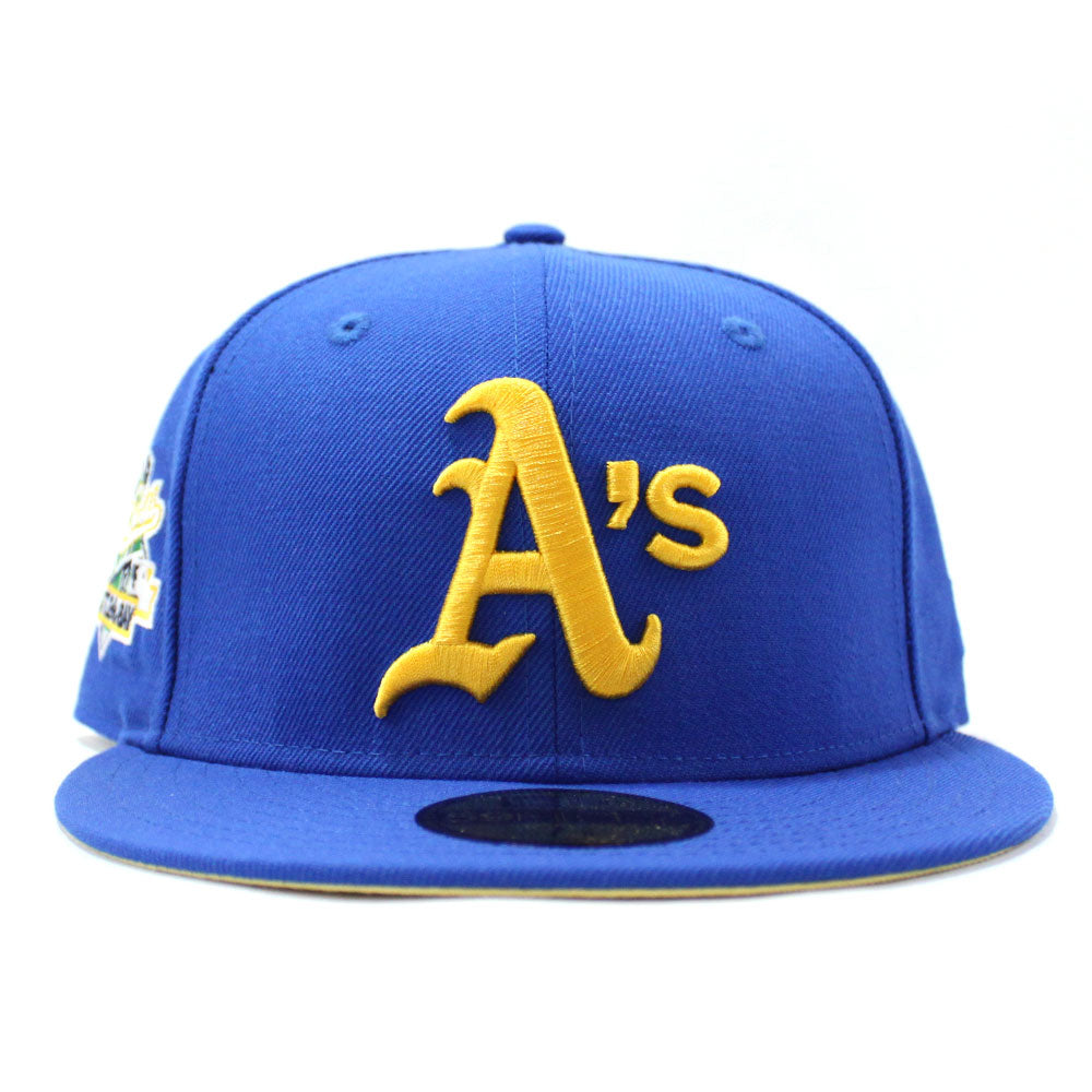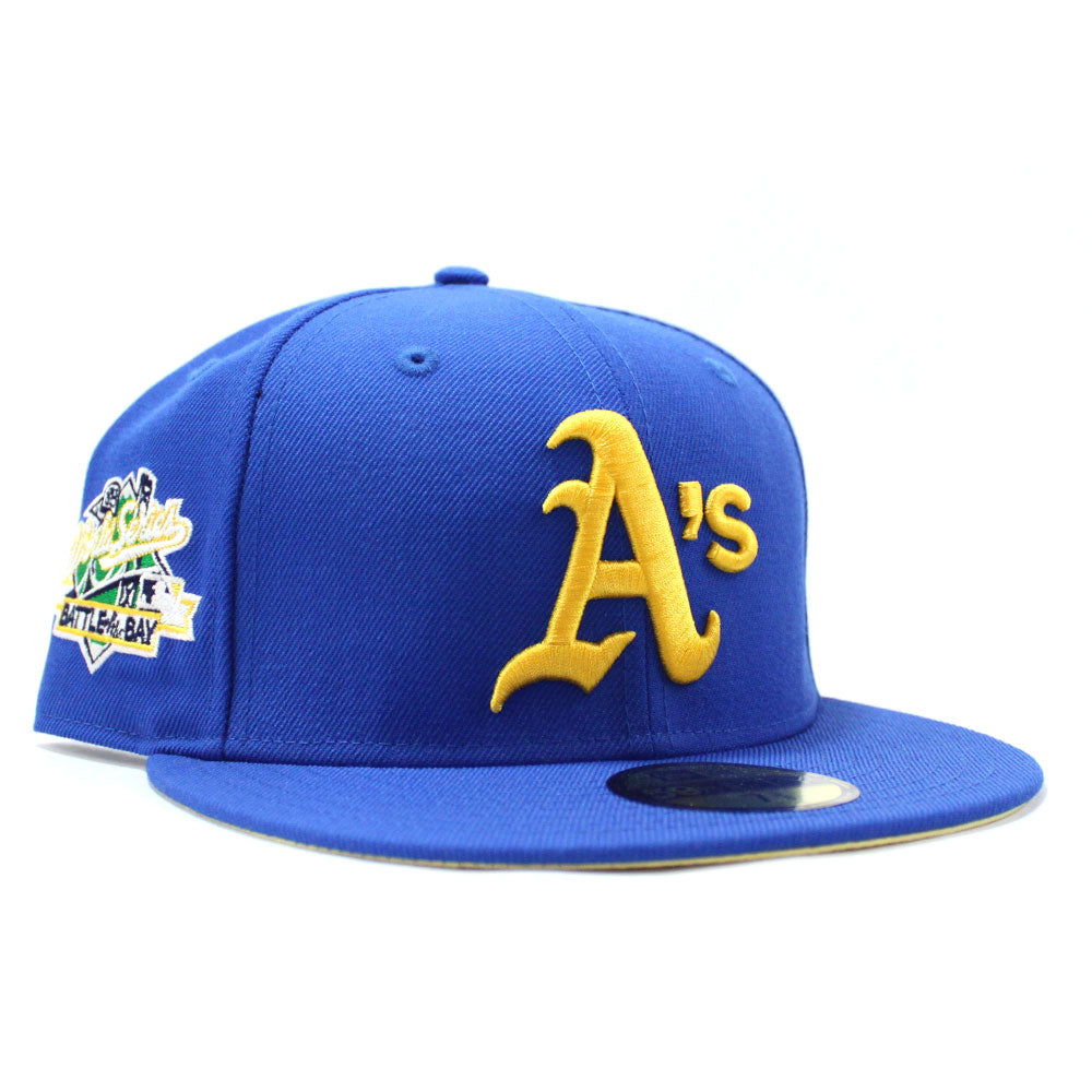 Oakland Athletics 1989 World Series Battle of The Bay New Era 59Fifty Fitted Hat in Blue & Light Yellow Under Brim.