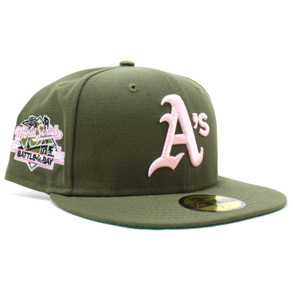 Oakland Athletics 1989 World Series Battle of The Bay New Era 59Fifty Fitted Hat in Olive & Green Under Brim.