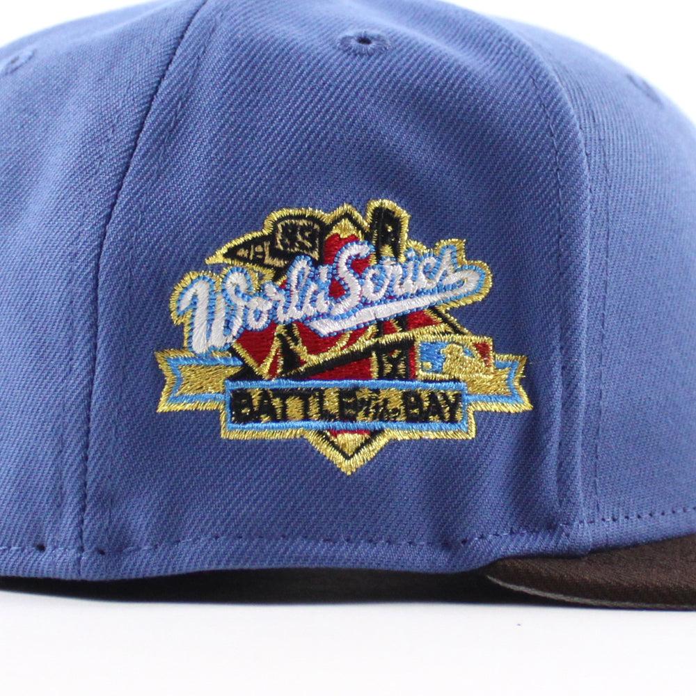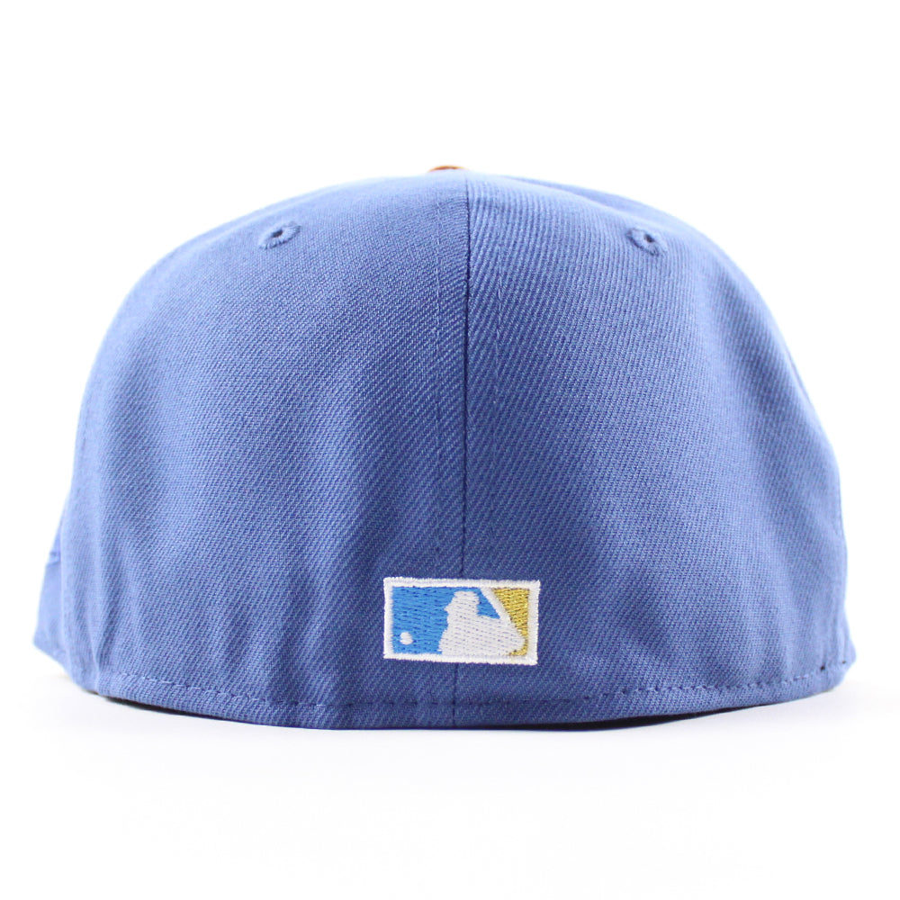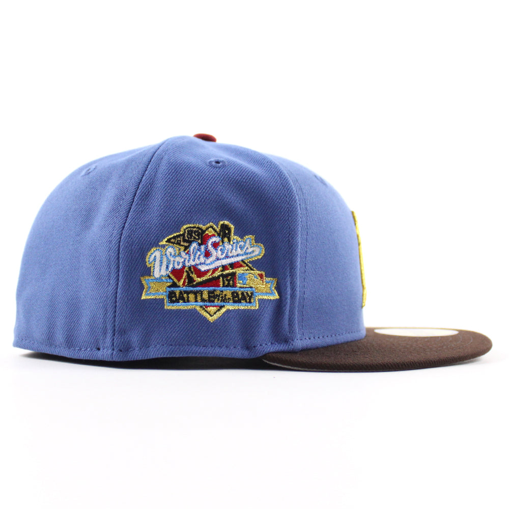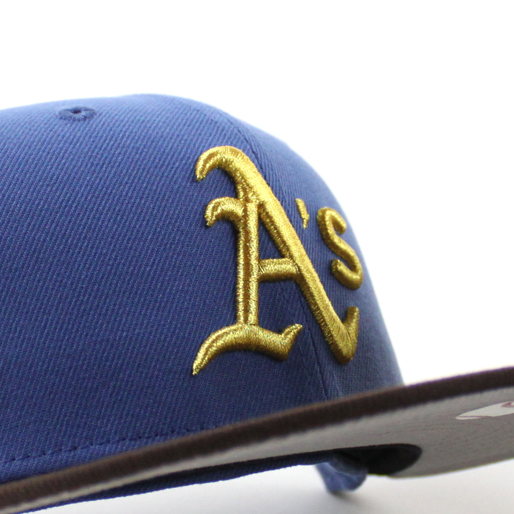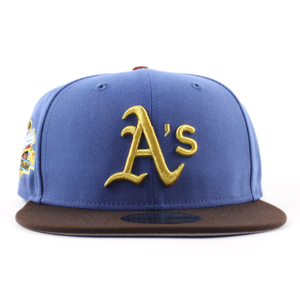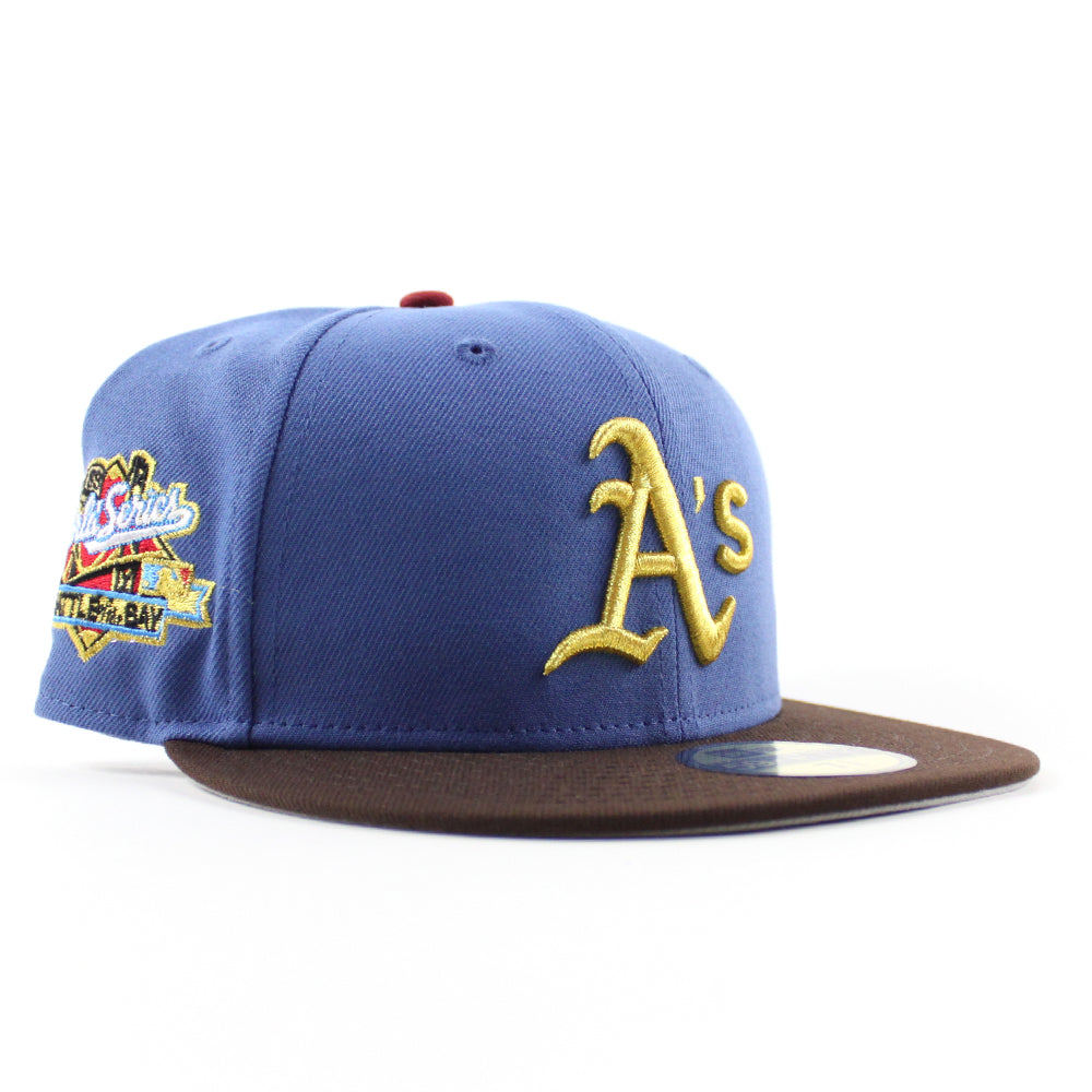 Oakland Athletics 1989 World Series New Era 59Fifty Fitted Hat in Indigo Blue, BurntWood Brown and GrayUnder Brim.