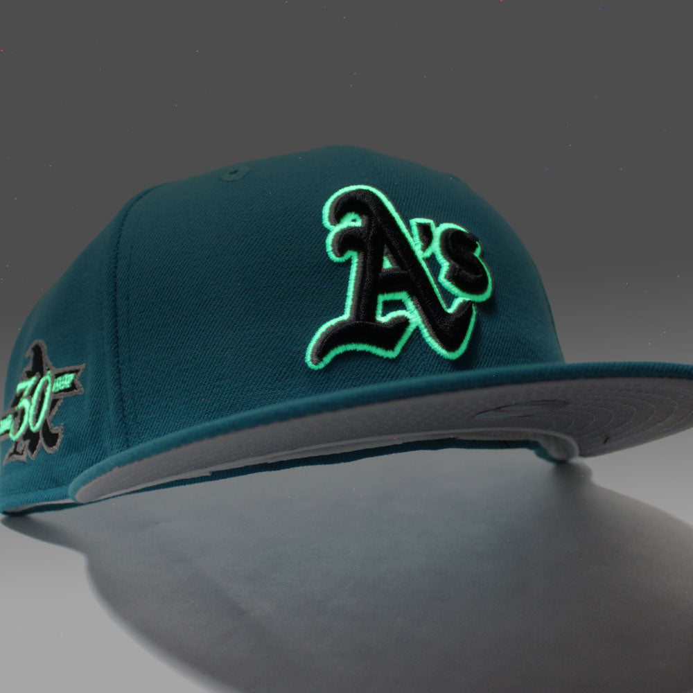 Oakland Athletics 30th Anniversary New Era 59Fifty Fitted Hat (Glow in the Dark Turquoise Gray Under Brim)