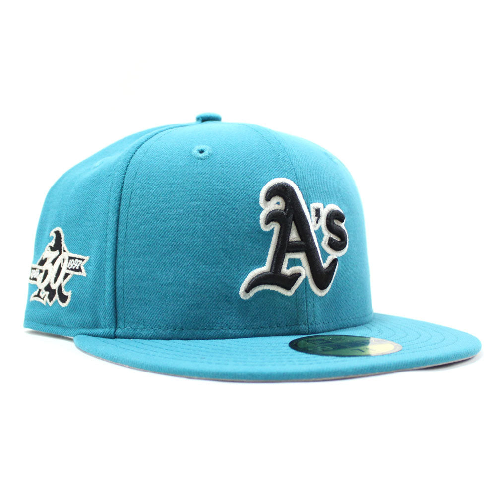 Oakland Athletics 30th Anniversary New Era 59Fifty Fitted Hat in Turquoise with Gray Under Brim.