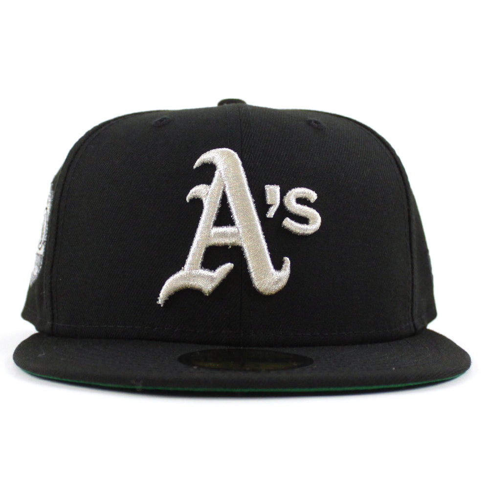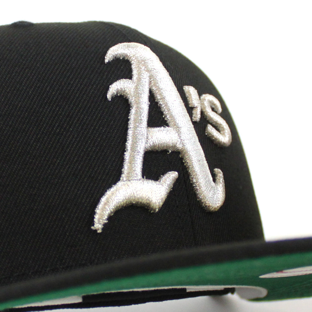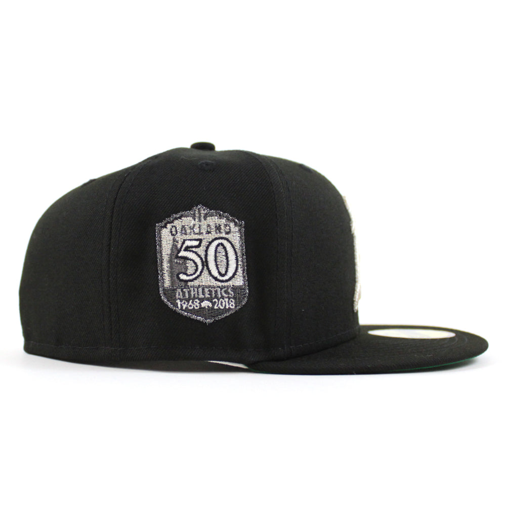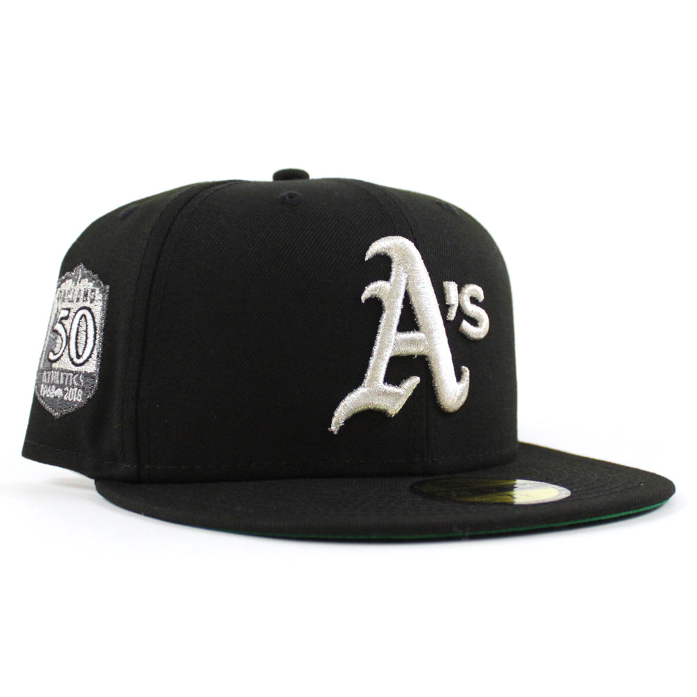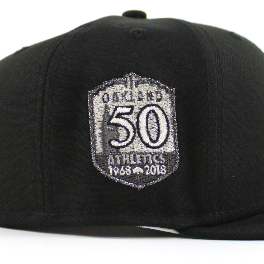 Oakland Athletics 50th Anniversary New Era 59Fifty Fitted Hat in Black with Green Under Brim.