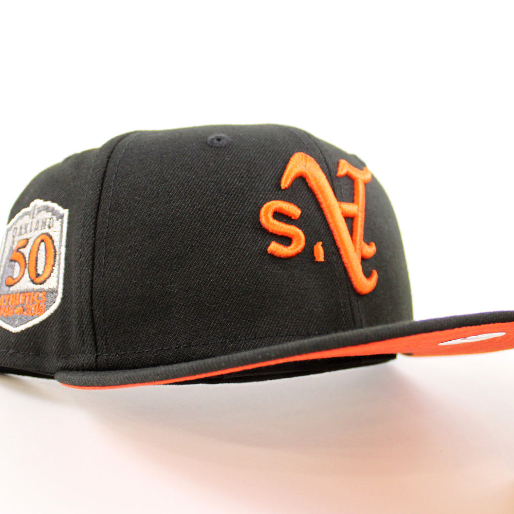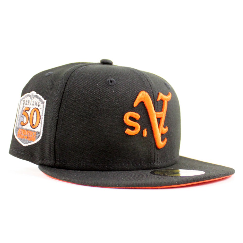 Oakland Athletics 50th ANNIVERSARY New Era 59Fifty Fitted Hat (Black Orange Under Brim)