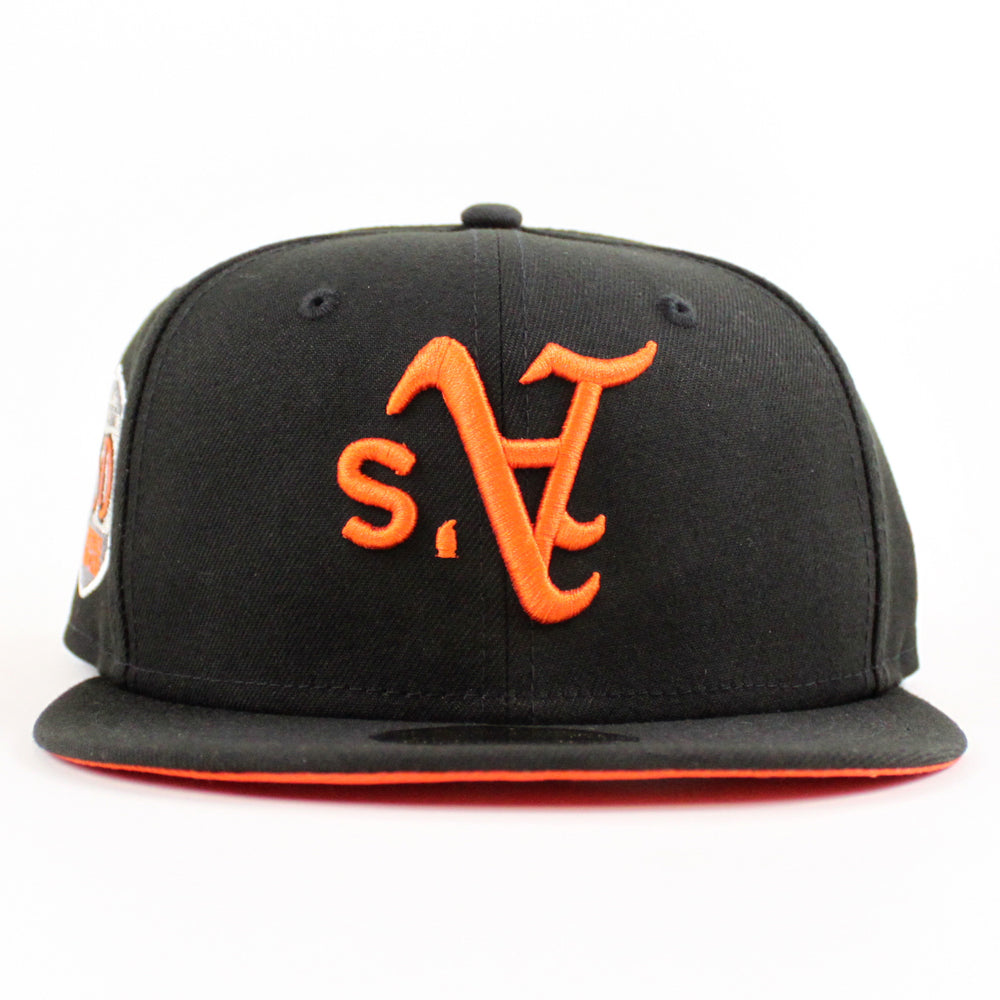 Oakland Athletics 50th ANNIVERSARY New Era 59Fifty Fitted Hat in Black and Orange Under Brim. Contributed by Kenny.
