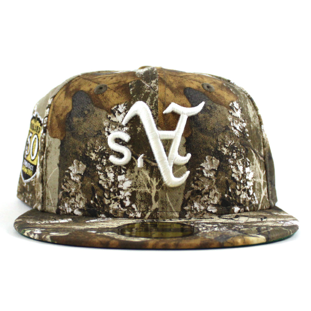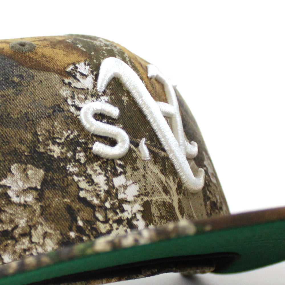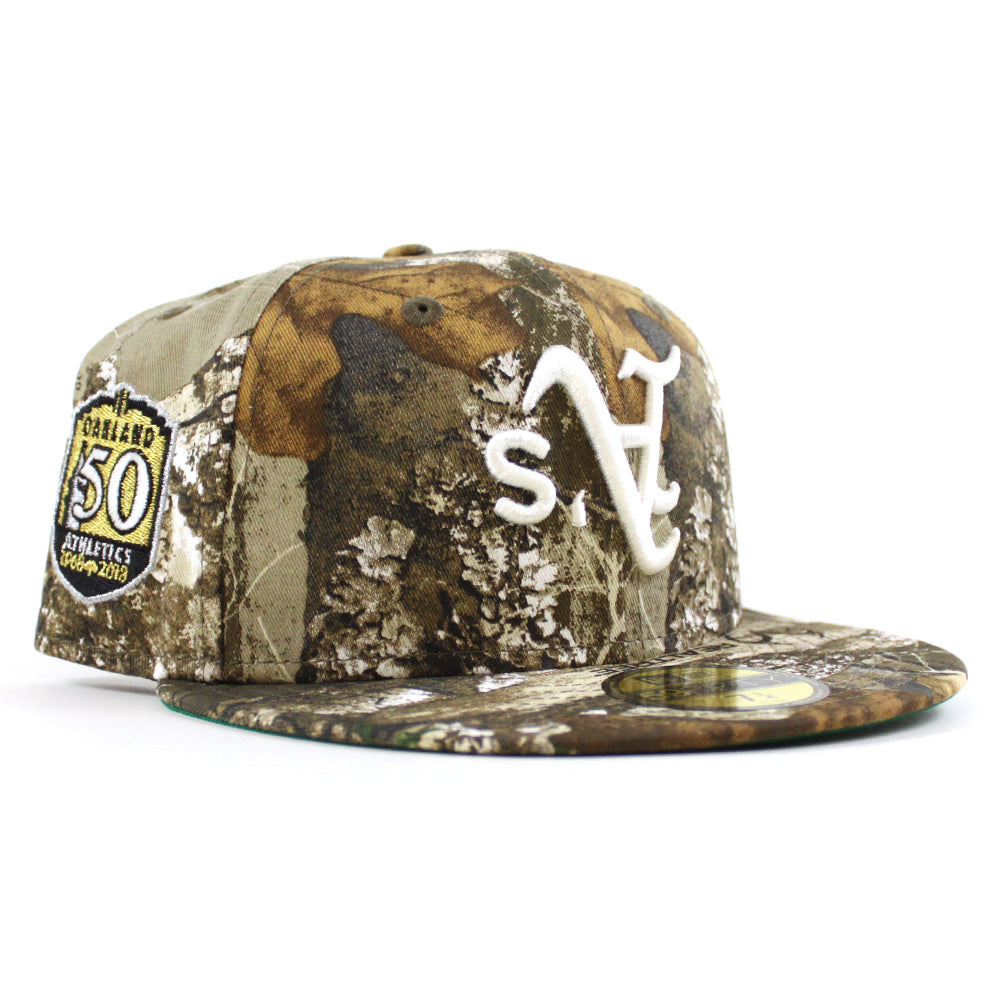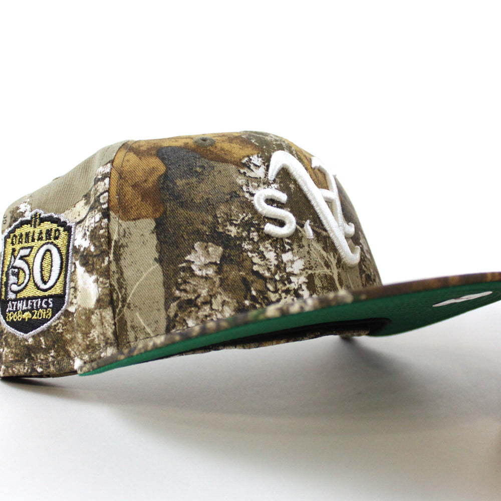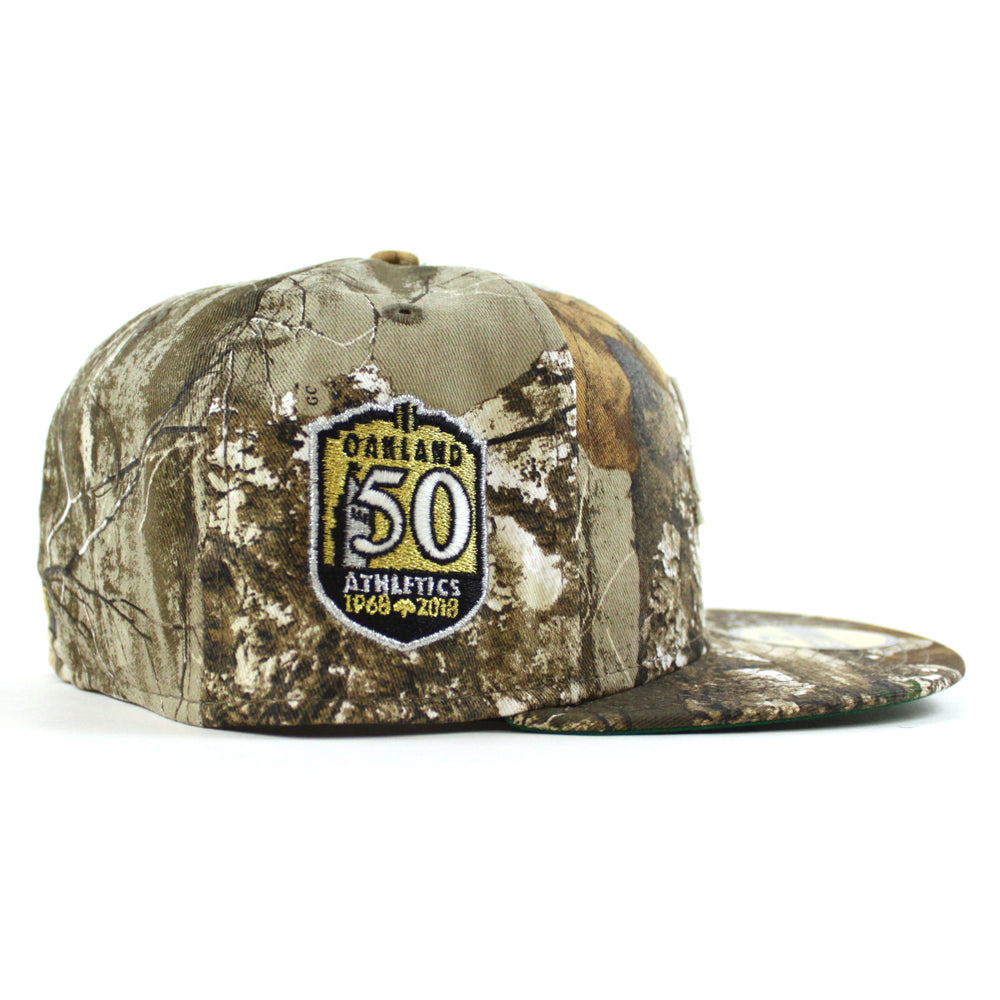 Oakland Athletics 50th Anniversary New Era 59Fifty Fitted Hat in RealTree Camo with Green Under Brim.