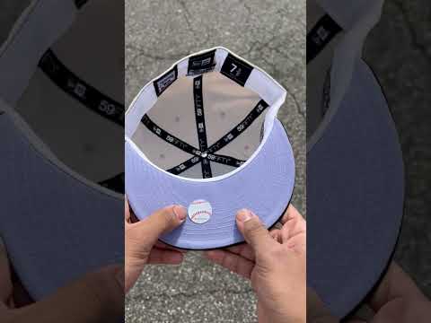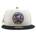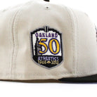 Oakland Athletics 50th Anniversary New Era 59Fifty Fitted Hat in Stone, Black and Lavender Under Brim.