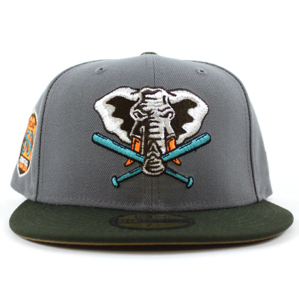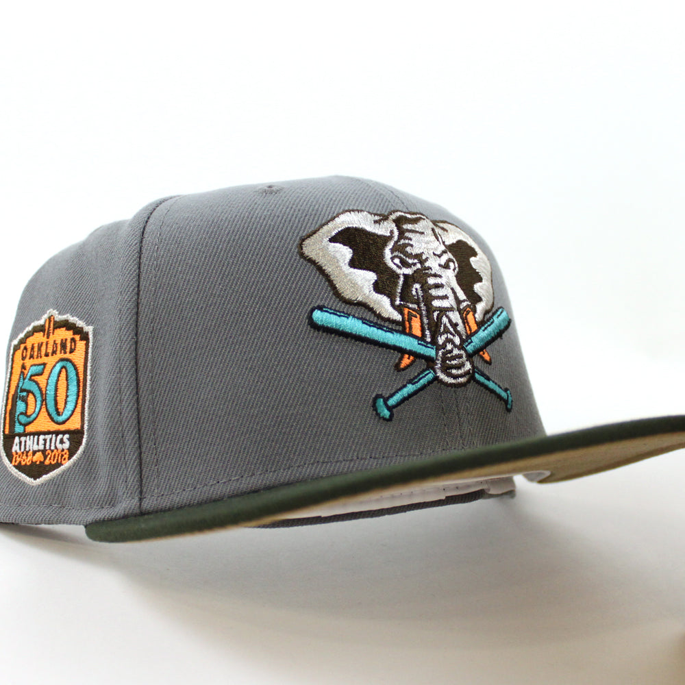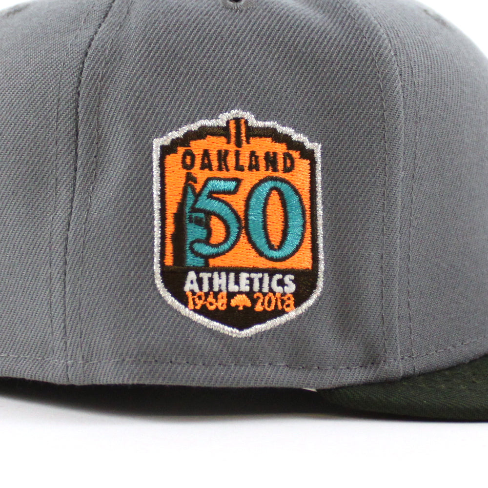 Oakland Athletics 50TH Anniversary New Era 59Fifty Fitted Hat (Storm Gray Dark Green Khaki Under Brim)