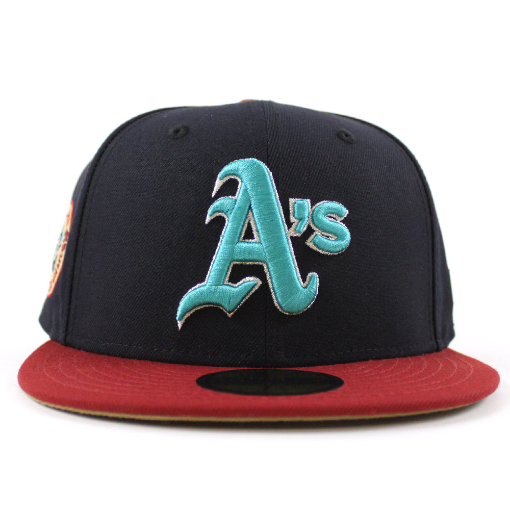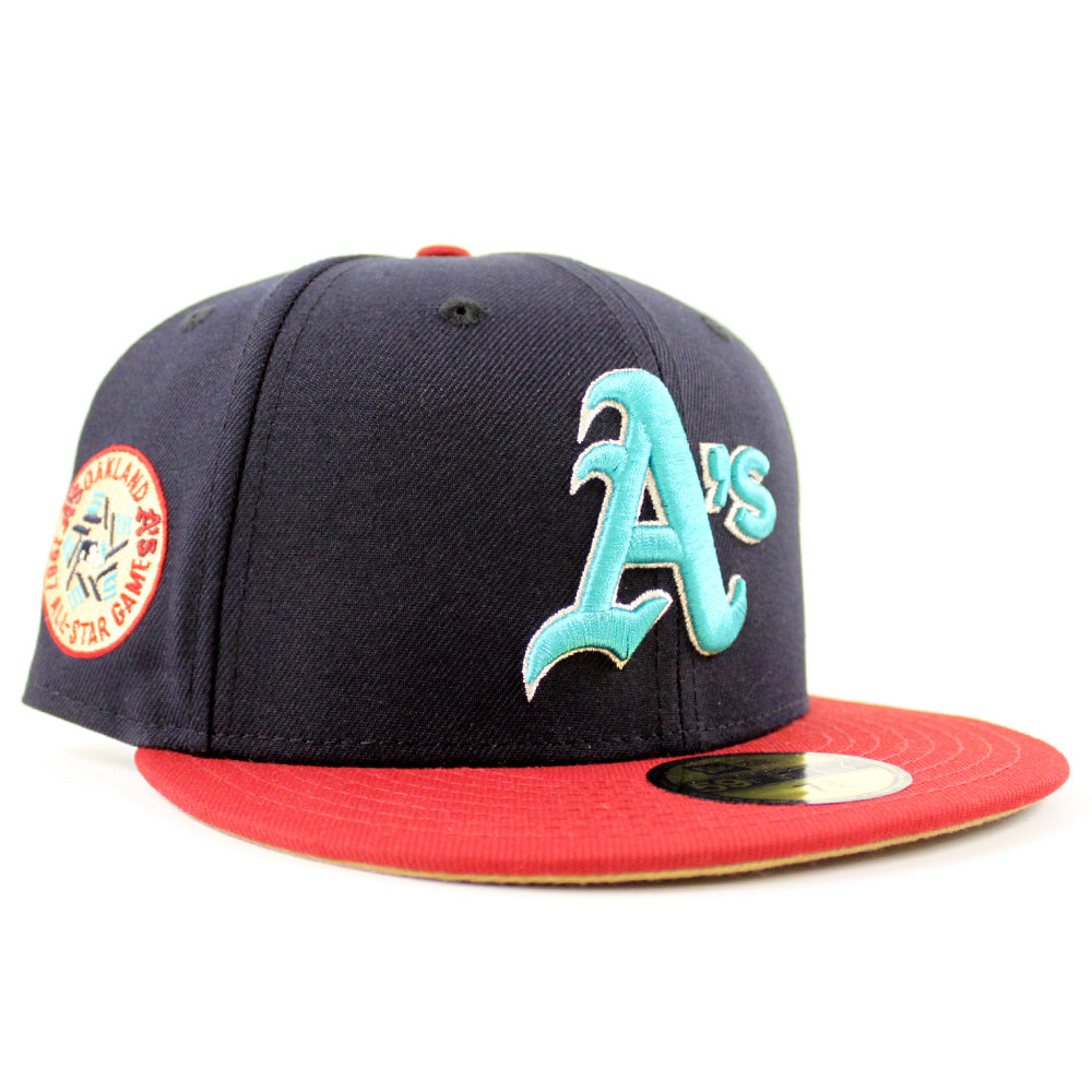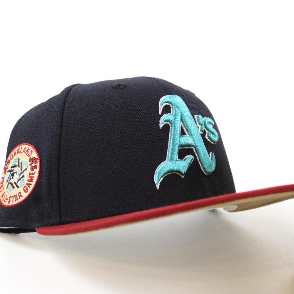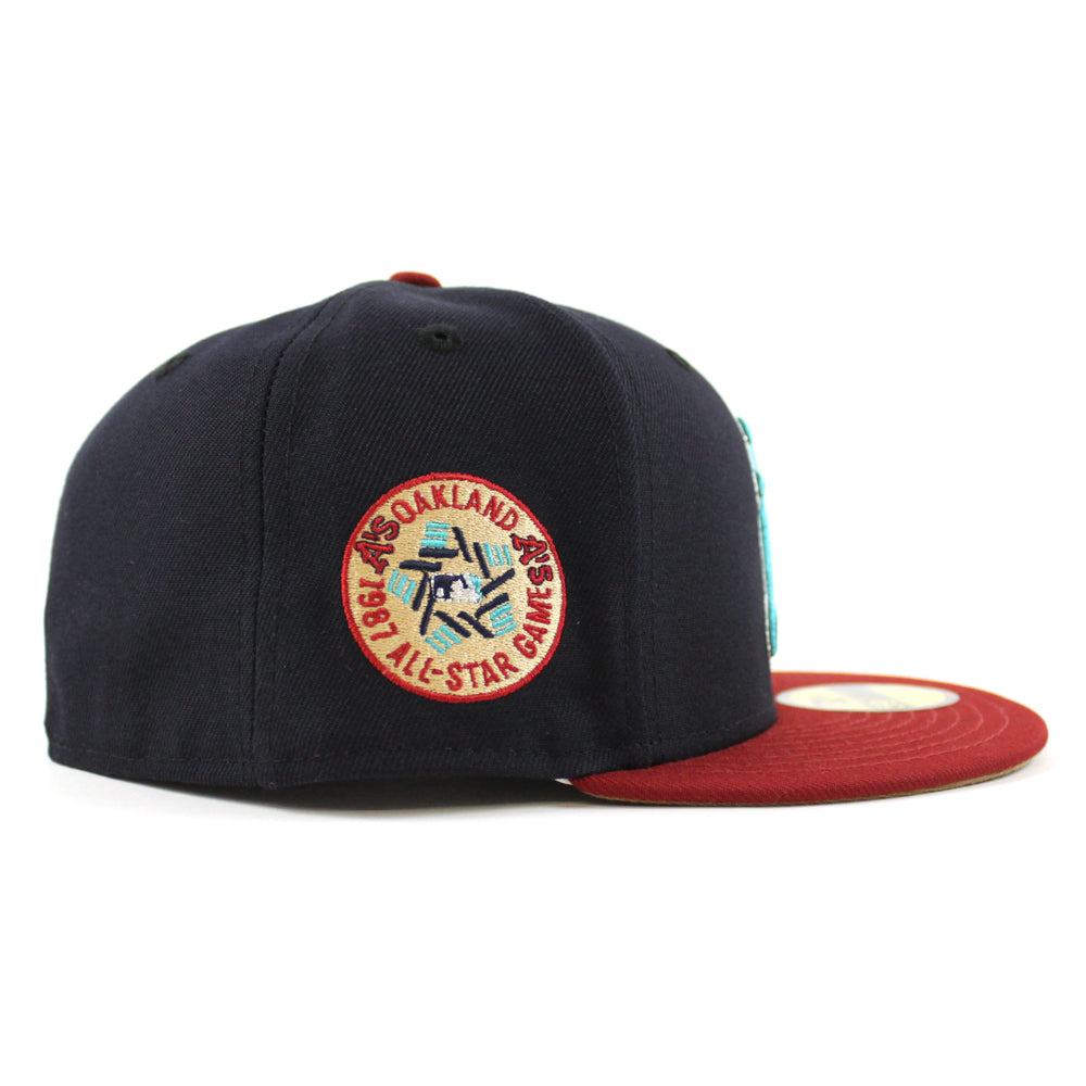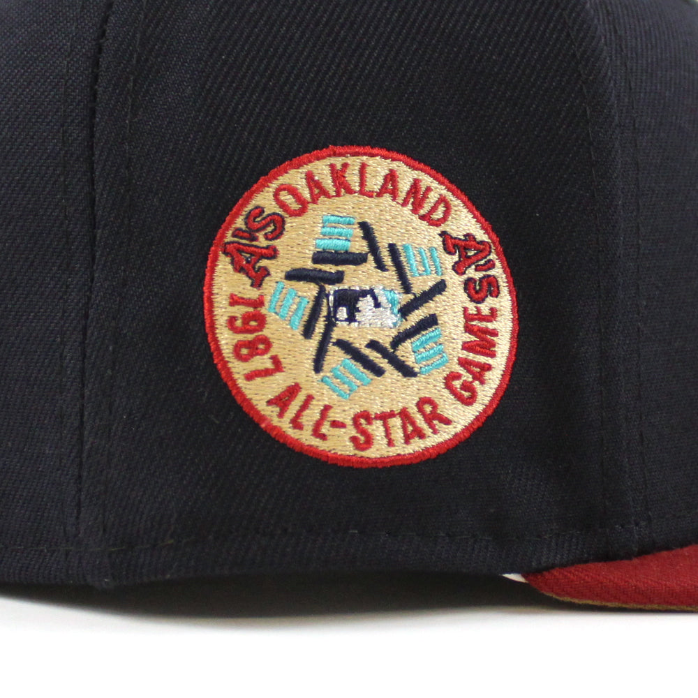 Oakland Athletics 1987 ALL STAR GAME New Era 59Fifty Fitted Hat in Navy, Cardinal with Khaki Under Brim.
