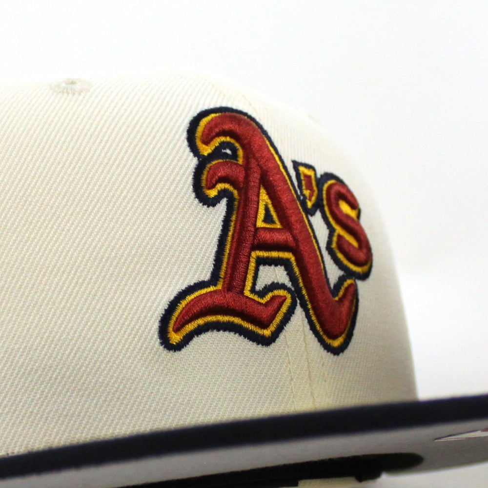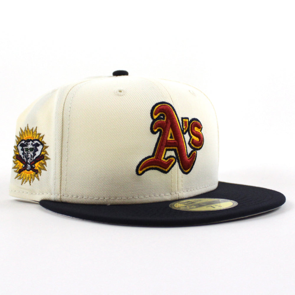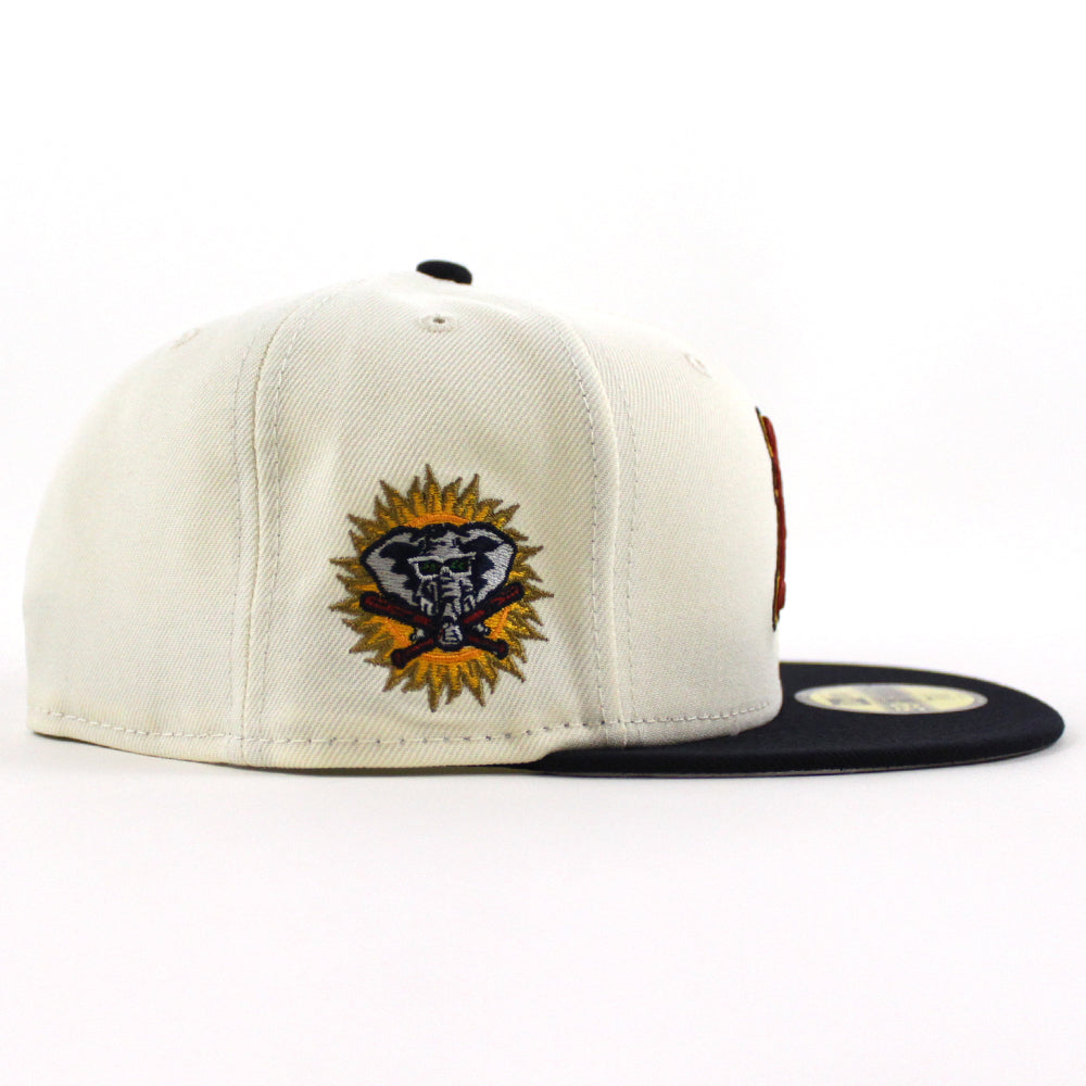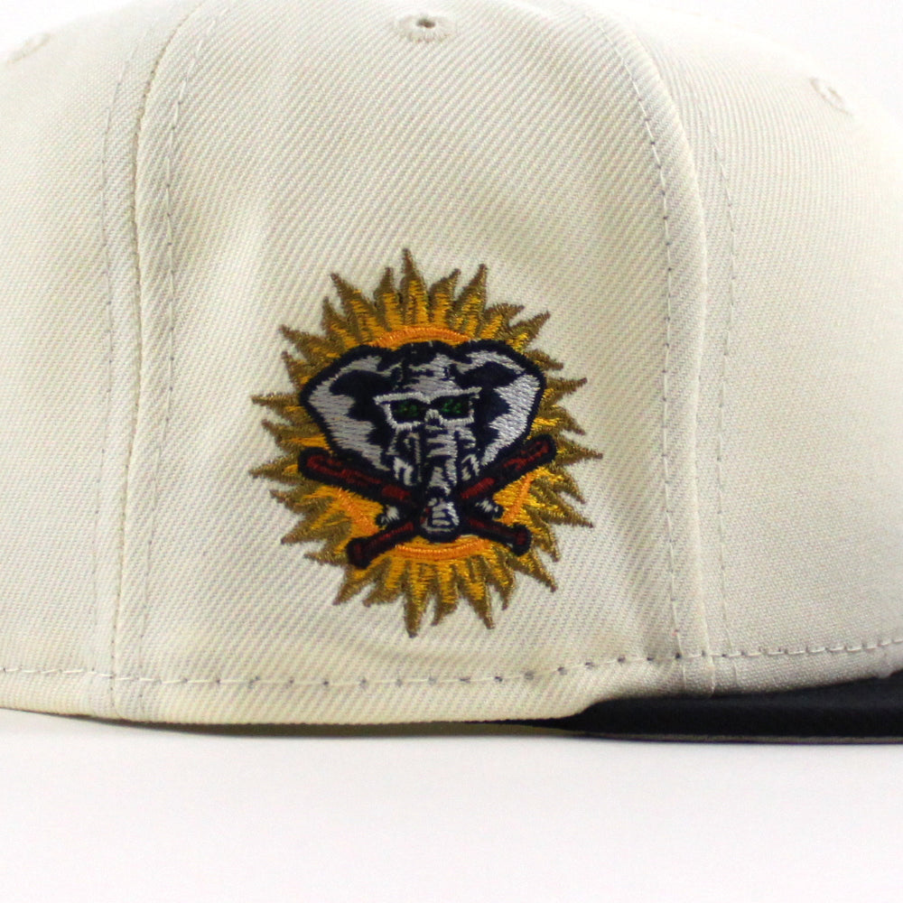 Oakland Athletics Elephant New Era 59Fifty Fitted Cap in Chrome, Navy and Gray Under Brim.