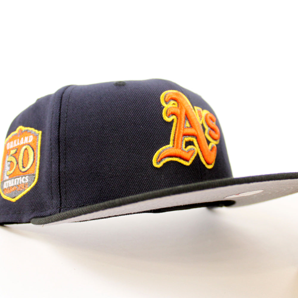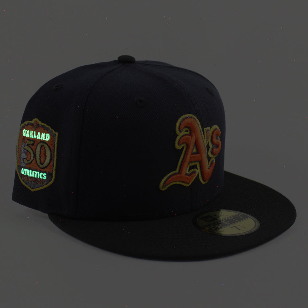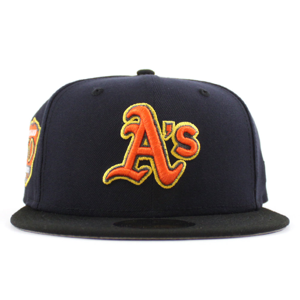 Oakland Athletics Elephant patch New Era 59Fifty Fitted Cap in Navy, Black and Gray Under Brim.