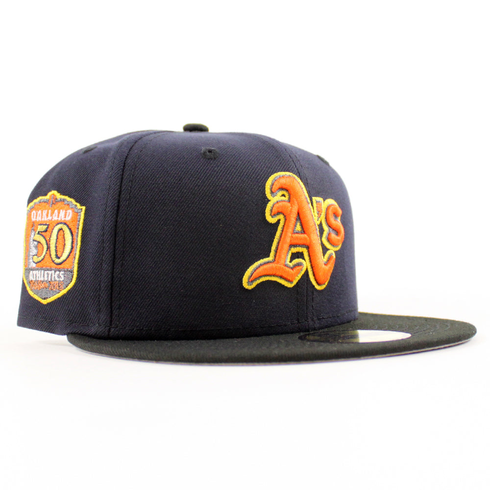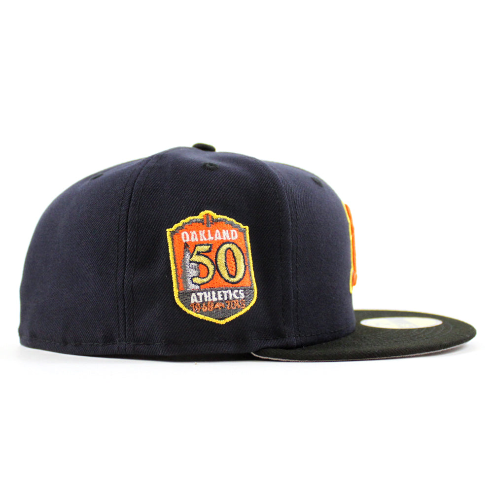 Oakland Athletics Elephant patch New Era 59Fifty Fitted Hat (Navy Black Gray Under Brim)