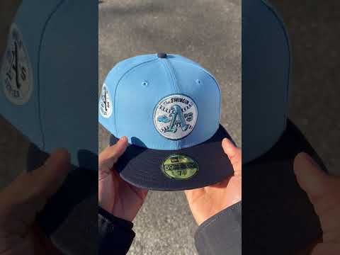 Oakland Athletics Swinging As New Era 59Fifty Fitted Cap in SkyBlue, Navy and Gray Under Brim.